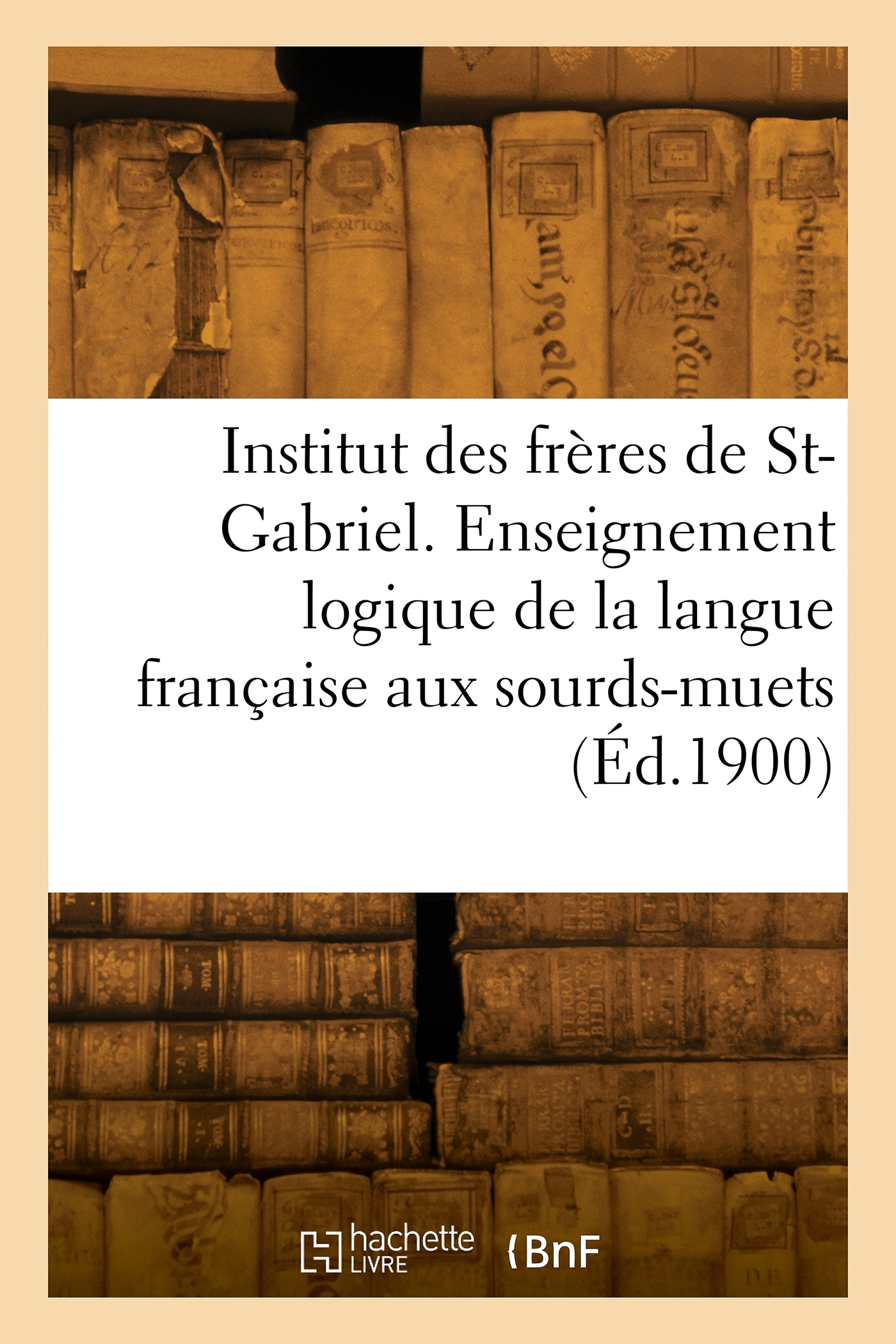 Institut des frères de Saint-Gabriel. Enseignement logique de la langue française aux sourds-muets. Cours de première année. (21 mars 1900.) Date de l'édition originale : 1900 Le présent ouvrage s'inscrit dans une politique de conservation patrimoniale des ouvrages de la littérature Française mise en place avec la BNF. HACHETTE LIVRE et la BNF proposent ainsi un catalogue de titres indisponibles, la BNF ayant numérisé ces oeuvres et HACHETTE LIVRE les imprimant à la demande. Certains de ces ouvrages reflètent des courants de pensée caractéristiques de leur époque, mais qui seraient aujourd'hui jugés condamnables. Ils n'en appartiennent pas moins à l'histoire des idées en France et sont susceptibles de présenter un intérêt scientifique ou historique. Le sens de notre démarche éditoriale consiste ainsi à permettre l'accès à ces oeuvres sans pour autant que nous en cautionnions en aucune façon le contenu. Pour plus d'informations, rendez-vous sur www.hachettebnf.fr