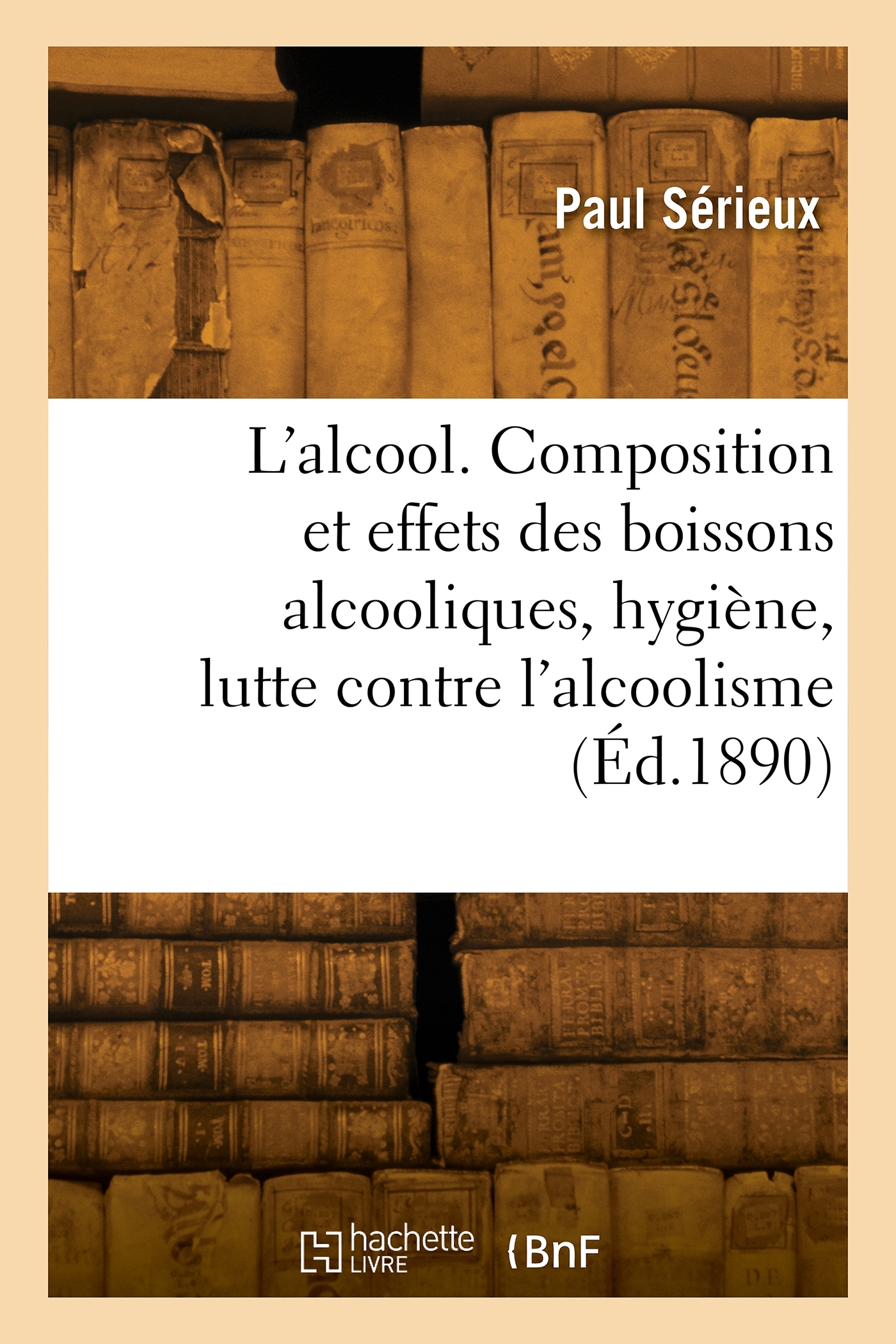 L'alcool : composition et effets des boissons alcooliques, l'hygiène de la boisson, la lutte contre l'alcoolisme / par les DD. Paul Sérieux,... Félix Mathieu,... Date de l'édition originale : 1890-1900 Le présent ouvrage s'inscrit dans une politique de conservation patrimoniale des ouvrages de la littérature Française mise en place avec la BNF. HACHETTE LIVRE et la BNF proposent ainsi un catalogue de titres indisponibles, la BNF ayant numérisé ces oeuvres et HACHETTE LIVRE les imprimant à la demande. Certains de ces ouvrages reflètent des courants de pensée caractéristiques de leur époque, mais qui seraient aujourd'hui jugés condamnables. Ils n'en appartiennent pas moins à l'histoire des idées en France et sont susceptibles de présenter un intérêt scientifique ou historique. Le sens de notre démarche éditoriale consiste ainsi à permettre l'accès à ces oeuvres sans pour autant que nous en cautionnions en aucune façon le contenu. Pour plus d'informations, rendez-vous sur www.hachettebnf.fr