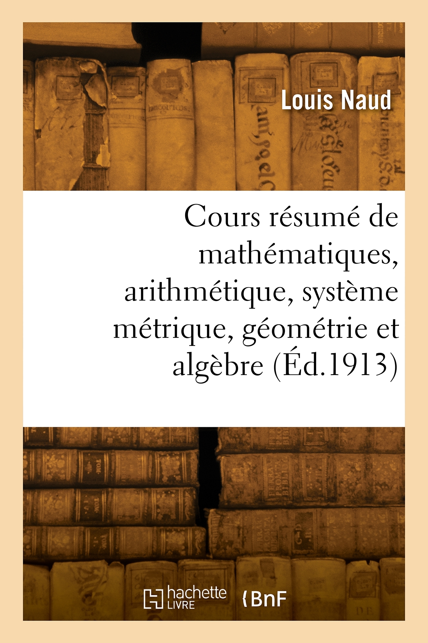 Cours résumé de mathématiques, arithmétique, système métrique, géométrie et algèbre, à l'usage des candidats aux examens de l'administration des postes et des télégraphes, par Louis Naud,... G. Hamelin,... Date de l'édition originale : 1913 Le présent ouvrage s'inscrit dans une politique de conservation patrimoniale des ouvrages de la littérature Française mise en place avec la BNF. HACHETTE LIVRE et la BNF proposent ainsi un catalogue de titres indisponibles, la BNF ayant numérisé ces oeuvres et HACHETTE LIVRE les imprimant à la demande. Certains de ces ouvrages reflètent des courants de pensée caractéristiques de leur époque, mais qui seraient aujourd'hui jugés condamnables. Ils n'en appartiennent pas moins à l'histoire des idées en France et sont susceptibles de présenter un intérêt scientifique ou historique. Le sens de notre démarche éditoriale consiste ainsi à permettre l'accès à ces oeuvres sans pour autant que nous en cautionnions en aucune façon le contenu. Pour plus d'informations, rendez-vous sur www.hachettebnf.fr