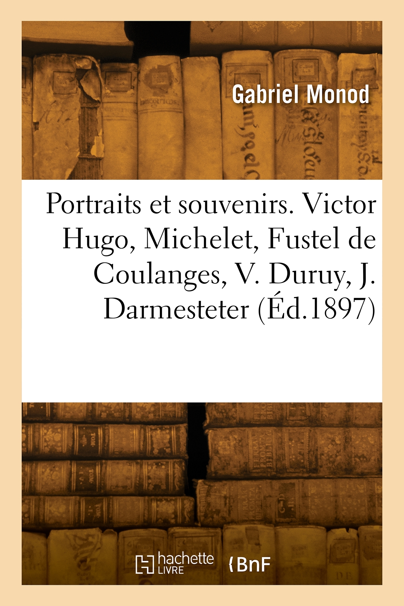 Portraits et souvenirs : Victor Hugo, Michelet, Fustel de Coulanges, V. Duruy, J. Darmesteter, etc. Bayreuth en 1876, le jubilé des Nibelungen, le mystère de la Passion à Ober-Ammergau / Gabriel Monod Date de l'édition originale : 1897 Le présent ouvrage s'inscrit dans une politique de conservation patrimoniale des ouvrages de la littérature Française mise en place avec la BNF. HACHETTE LIVRE et la BNF proposent ainsi un catalogue de titres indisponibles, la BNF ayant numérisé ces oeuvres et HACHETTE LIVRE les imprimant à la demande. Certains de ces ouvrages reflètent des courants de pensée caractéristiques de leur époque, mais qui seraient aujourd'hui jugés condamnables. Ils n'en appartiennent pas moins à l'histoire des idées en France et sont susceptibles de présenter un intérêt scientifique ou historique. Le sens de notre démarche éditoriale consiste ainsi à permettre l'accès à ces oeuvres sans pour autant que nous en cautionnions en aucune façon le contenu. Pour plus d'informations, rendez-vous sur www.hachettebnf.fr