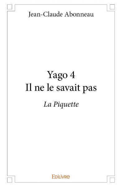 Dans cette troisième autobiographie, Jean-claude Abonneau raconte, en deux parties, deux époques de son existence. Dans la première, il évoque celle de l'enfant de onze et douze ans qu'il a été, parmi un groupe d'une dizaine de gosses de la commune passant de bons moments ensemble en s'abreuvant de piquette. Ce vin inférieur, composé de raisins qui font du vin qui rend fou, les enfants en boiront beaucoup ; ce qui les mettra dans des états seconds et leur fera faire bien des bêtises... Dans la seconde partie, l'auteur est un adolescent qui s'adonne à la chasse avec un très vieux chasseur, Amédée ; la chasse à l'alouette avec un miroir... Mais Yago, à cette époque là, ne savait pas que la chasse, c'était mal, et que cela symboliserait l'image de son existence future...