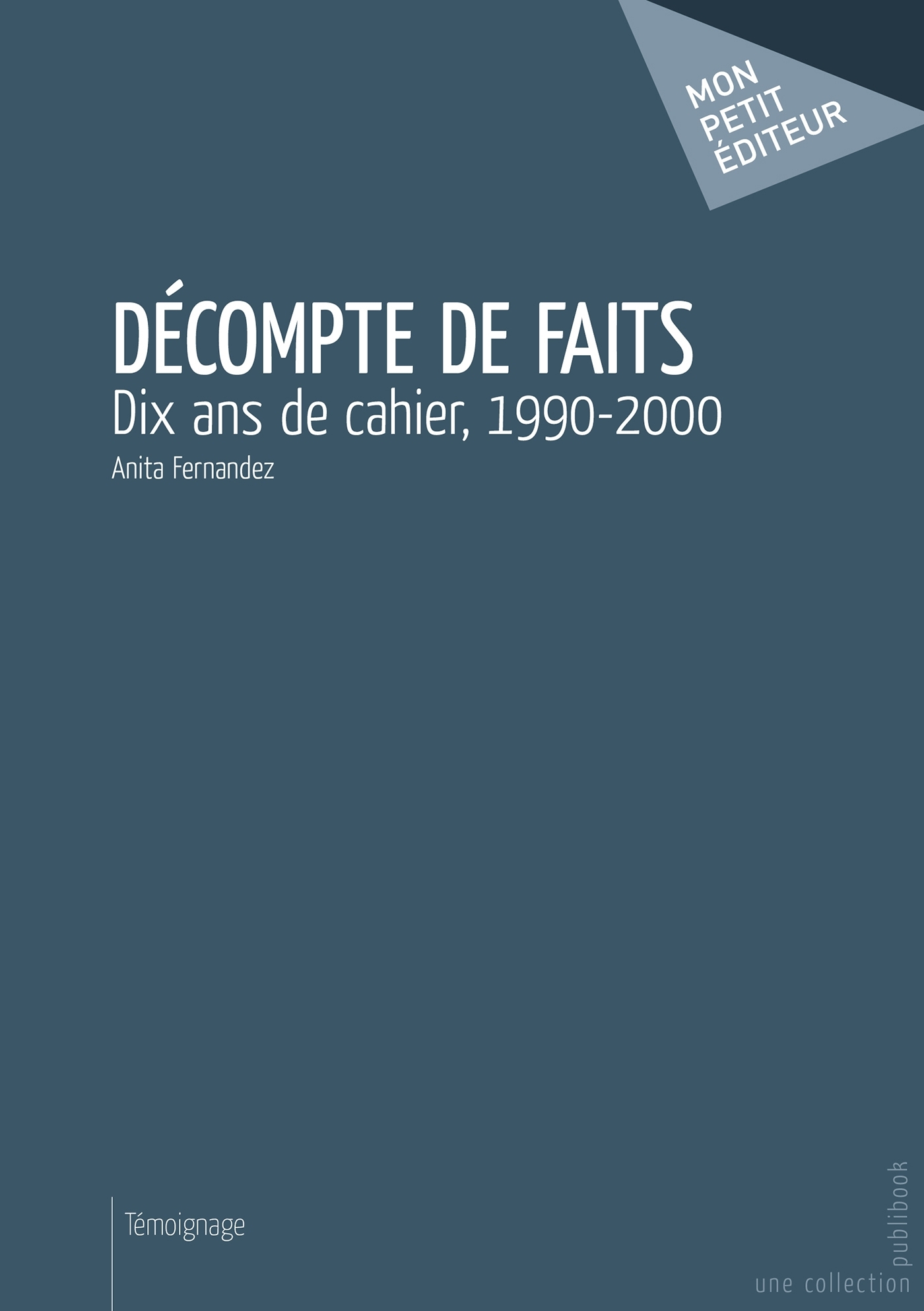 "Décompte de faits", sous forme de journal, dessine le portrait d'une femme de cinquante ans dans le Paris des années 1990. L'auteure, par phrases courtes, à travers émotions et rires, raconte les aléas de son métier de monteuse de films, ses voyages surprises, les rencontres familiales dans son Sud d'origine, ses amours. Malgré les deuils qui s'annoncent, elle tente avec humour d'entrer dans le nouveau siècle.