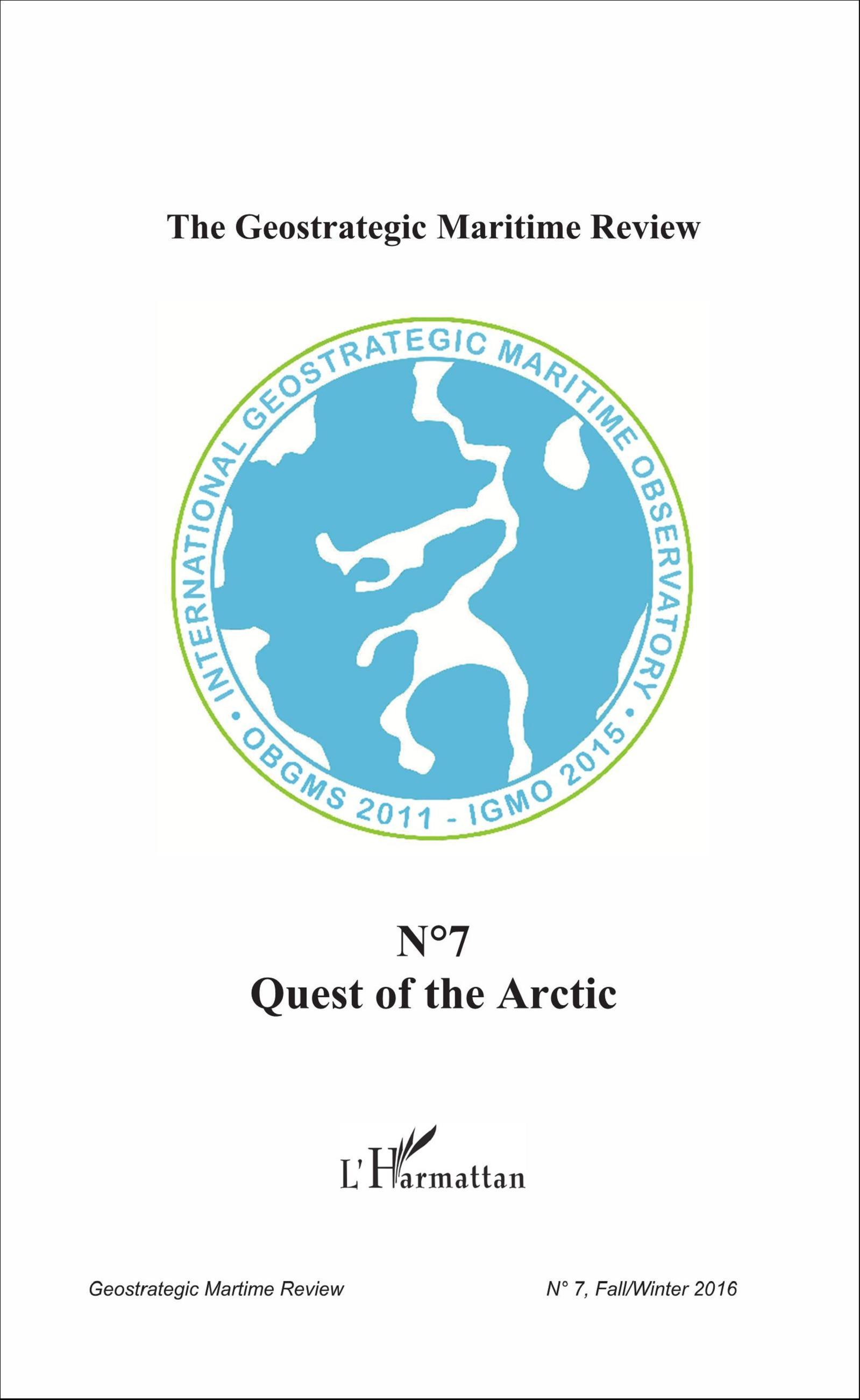 This seventh issue of the Geostrategic Maritime Review comes on the sixth year of activity of the International Geostrategic Maritime Observatory. This publication contains five articles : Arctic Geopolitics as a Major Public Issue : the Reasons Behind a Lack of Awareness ; Harvesting Arctic Authority : The Protection of Arctic Biomarine Resources, Sovereignty and Global Security ; The Case for an International Régime for the Arctic ; 25 years ago : the Odyssey of the Astrolabe and A life in the service of France, of the Pacific, and the Arctic and Antarctica : Michel Rocard (1930-2016), Regions .