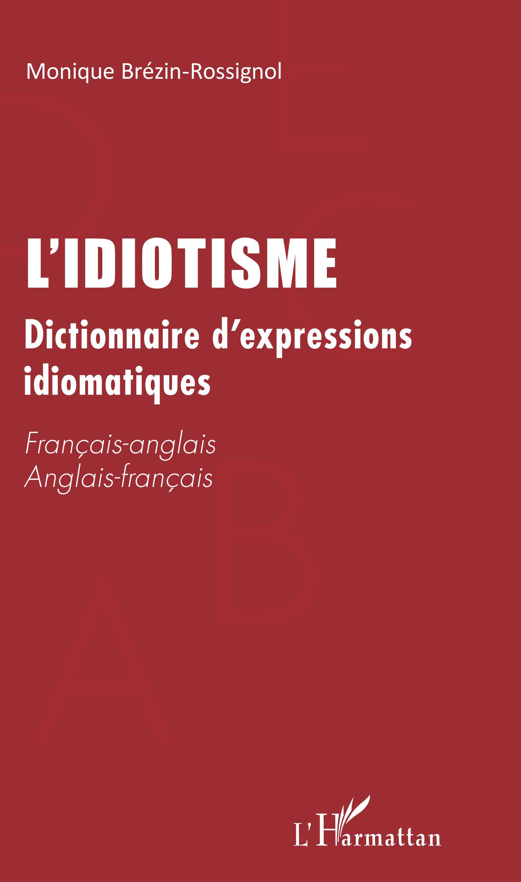 L'idiotisme est une locution qu'on ne peut traduire littéralement. On peut en comprendre chaque mot sans en saisir le sens : She is at sixes and sevens / Elle est sens dessus dessous On peut aussi en percevoir le sens, mais l'image employée n'est pas la même dans les deux langues : Porter le chapeau / To hold the bag Quand l'équivalent n'a pas été trouvé, l'expression est traduite, mais ne figure que dans l'une des entrées du dictionnaire. Elle est souvent le reflet de l'histoire ou de la culture du pays. Le Français perd son latin quand il ne comprend plus et pour l'Américain l'indien n'a rien de bon. L'Indian giver est celui qui reprendra ce qu'il a donné.