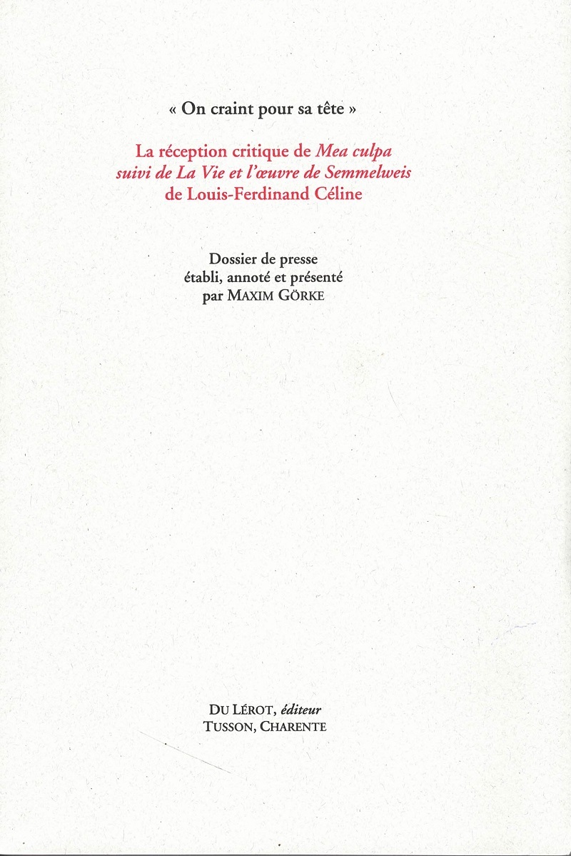 suivi de La vie et l'oeuvre de Semmelweis de Louis-Ferdinand Céline
