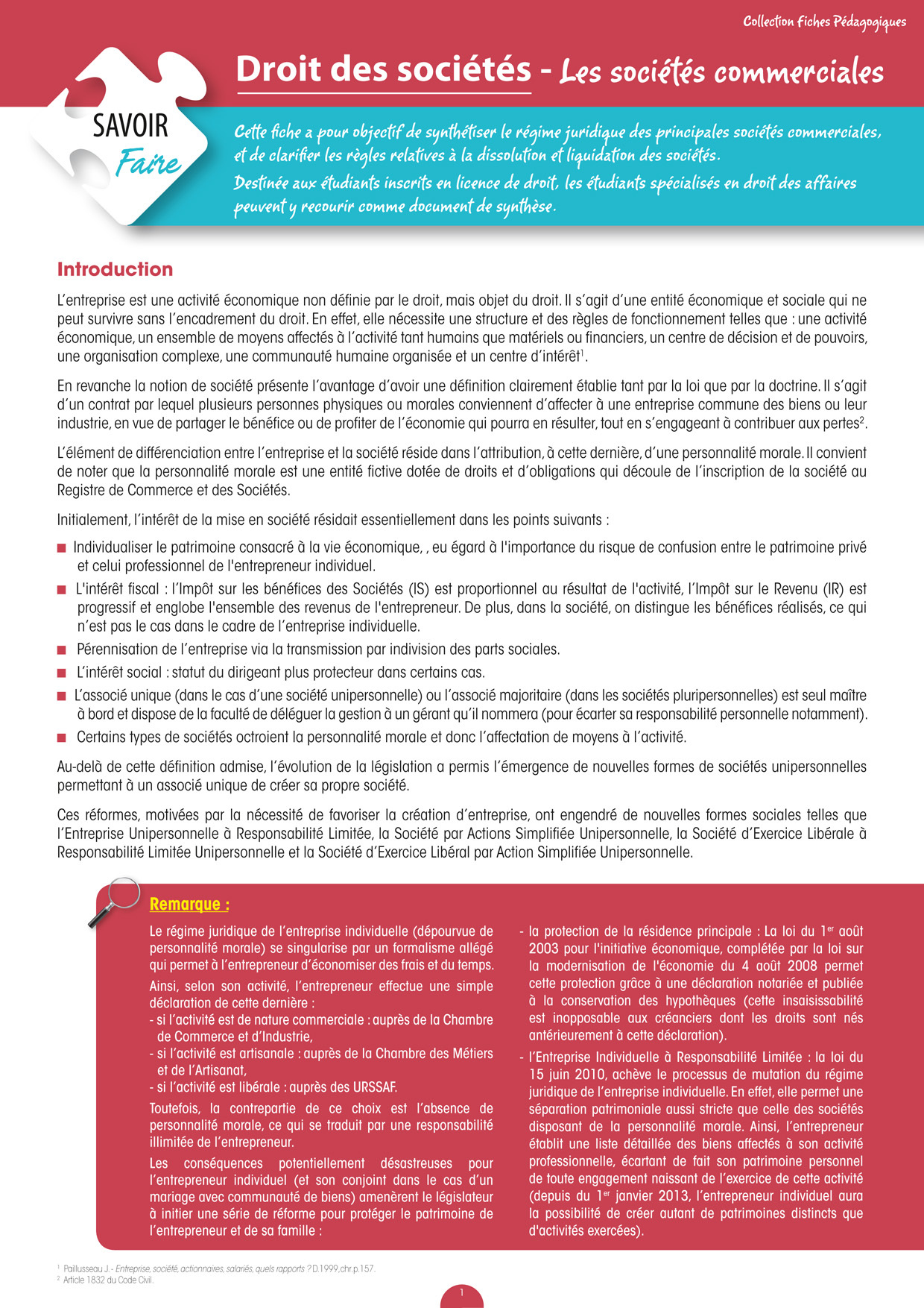 Droit des sociétés - Les sociétés commerciales