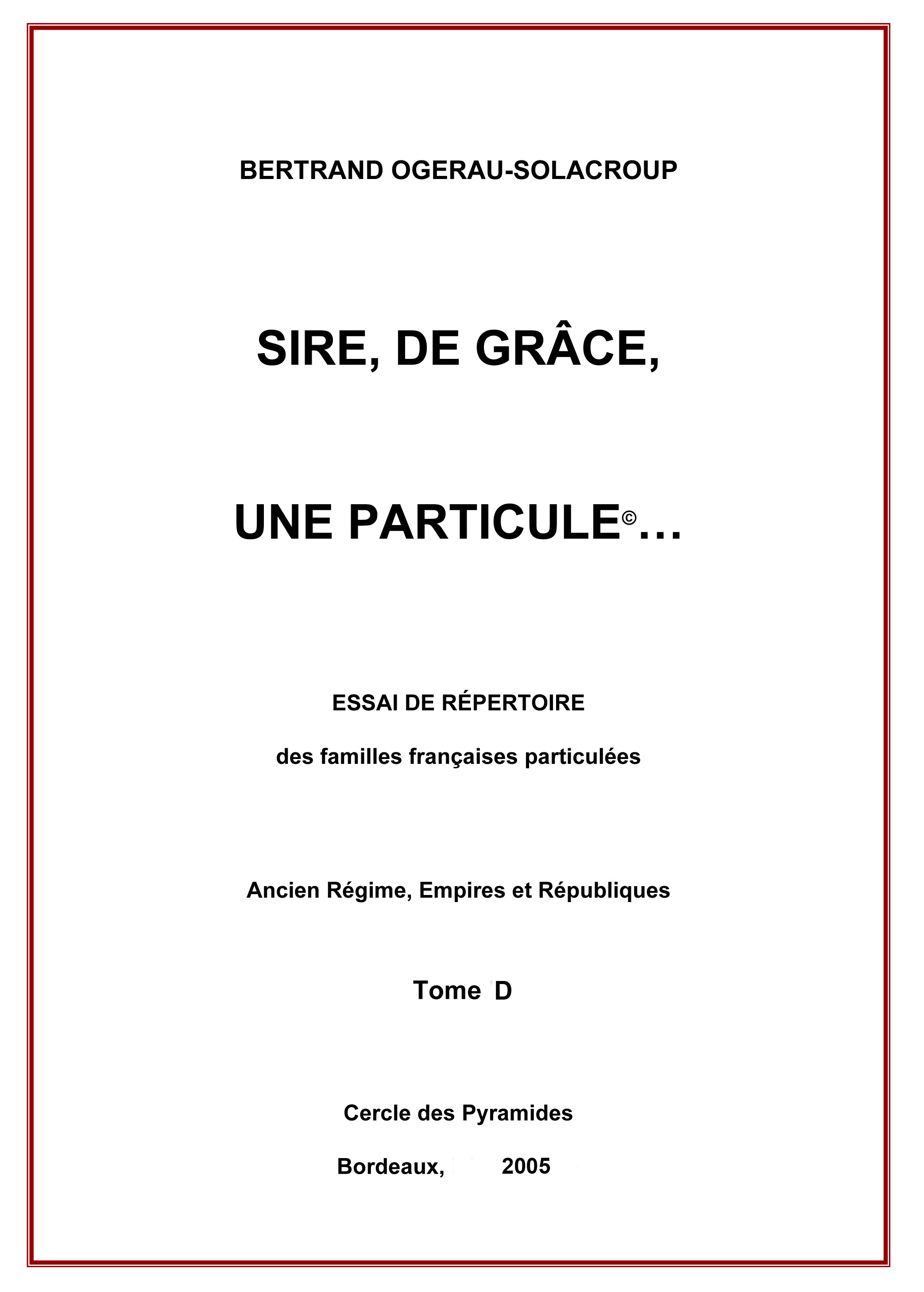Sire, de grâce, une Particule Tome D