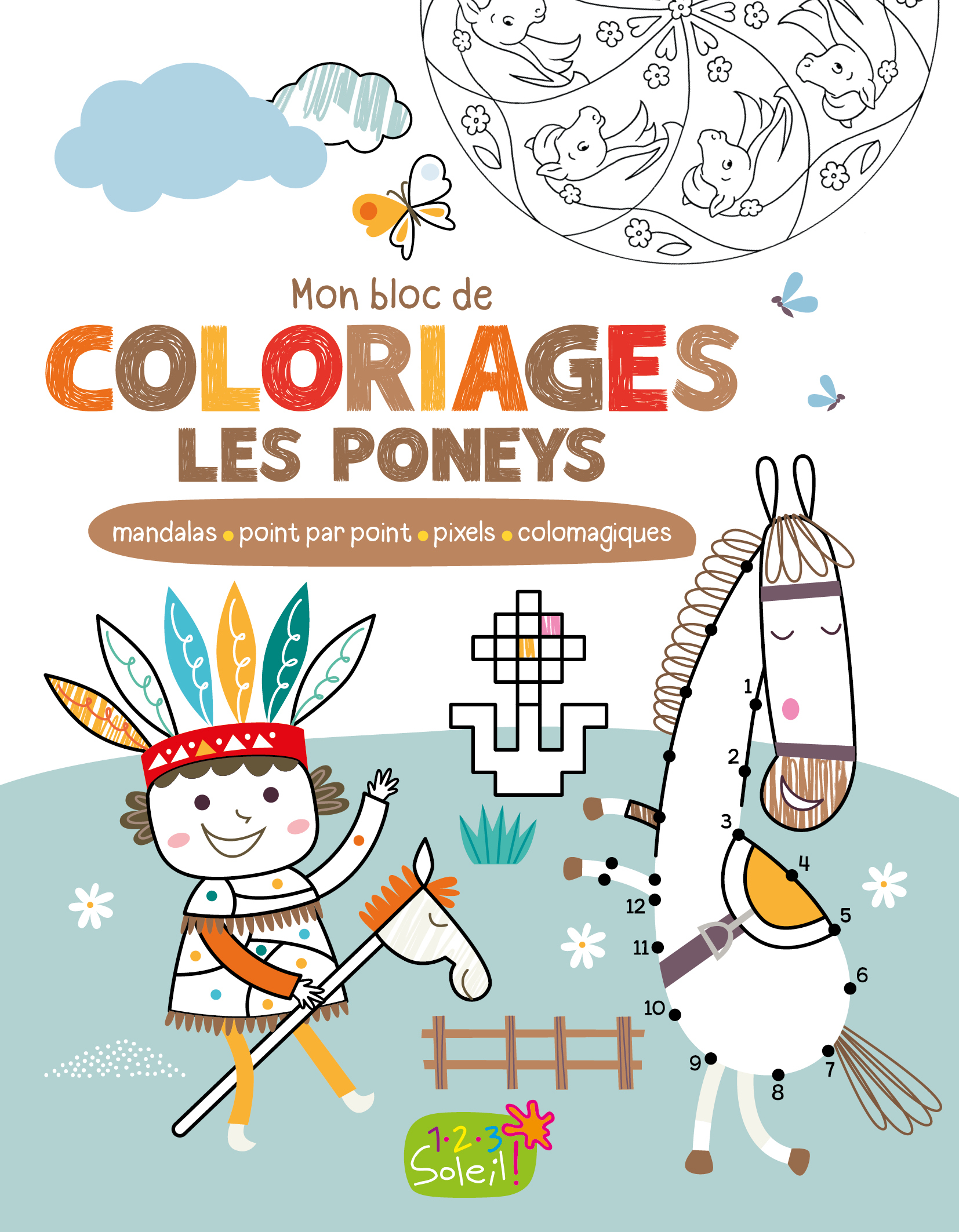 40 mandalas, coloriages magiques, pixels, coloriages points par point et coloriages géométriques pour découvrir les poneys. Dans un format bloc très pratique à emporter partout.