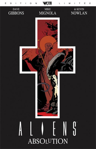 Édition Collector, tirage unique présentant la nouvelle couverture SANS MARQUAGES sous fourreau découpé en crucifix. Traduction remaniée, nouveau lettrage, format original respecté. Aliens Salvation : le classique de Mike MIGNOLA et Dave GIBBONS, dans une nouvelle version baptisée Absolution. Le capitaine du cargo spatial Nova Maru est hystérique depuis qu'il a découvert la nature du fret qu'il transporte pour le compte de la Compagnie : des dizaines de xénomorphes aliens. Il décide d'abandonner son vaisseau et son équipage, forçant le jeune Selkirk, qui ignore tout sur le trafic de son employeur, à l'accompagner. Leur capsule s'écrase sur une planète hostile, où ils se retrouvent sans eau, ni nourriture. Quelques heures plus tard, le Nova Maru s'écrase à son tour sur cette planète et libère sa cargaison dans la nature. Luttant pour survivre dans cet enfer, Selkirk, qui a été élevé dans le respect des dogmes catholiques, voit dans son combat contre les créatures le chemin vers la rédemption qui lui permettra d'accéder au paradis...