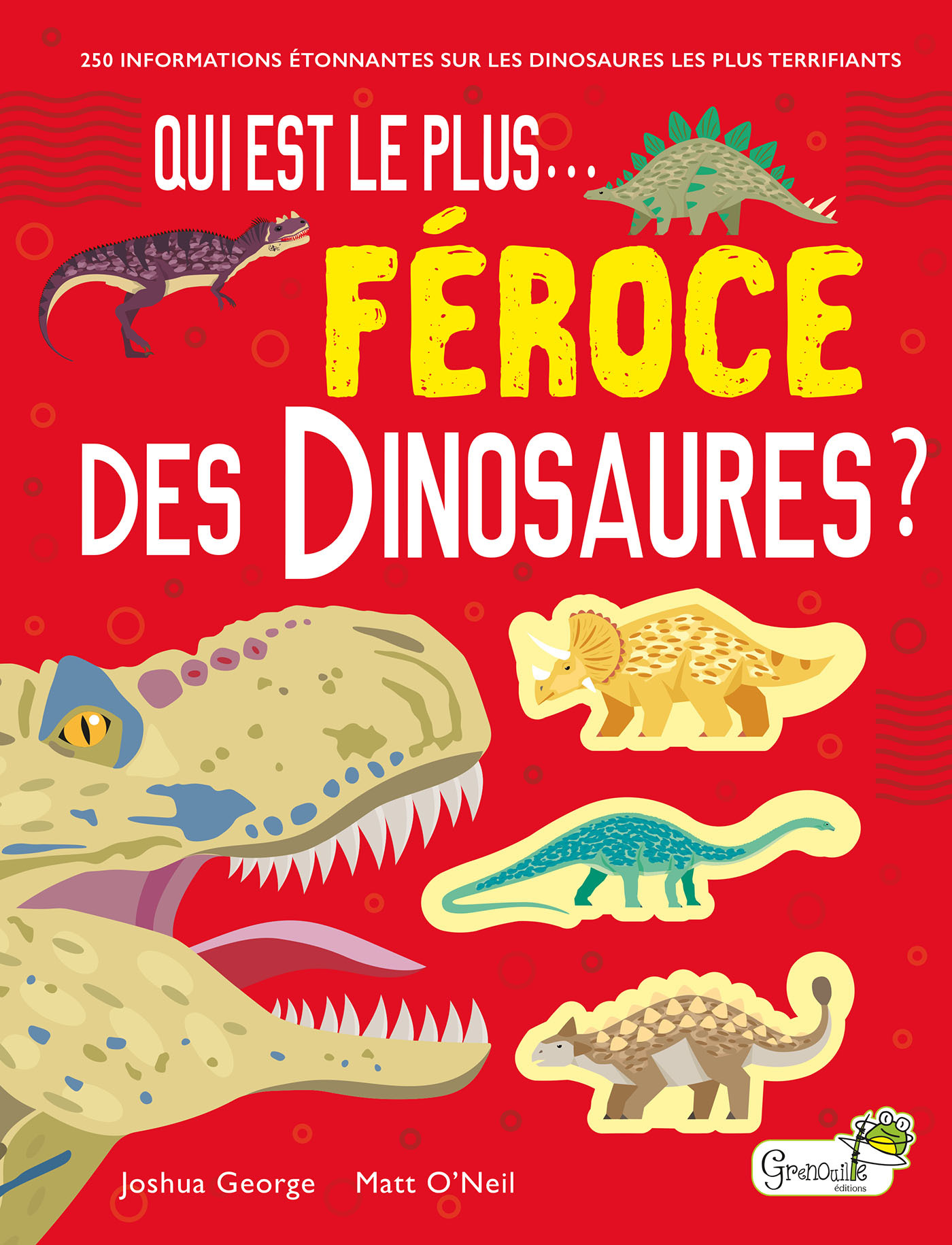 Un documentaire original sur les dinosaures, regroupés par caractéristiques : les prédateurs, les défenseurs, les « petits mais costauds », les reptiles marins, les reptiles volants. Dans chaque partie, trois dinosaures sont présentés sur une page, dévoilant leurs caractéristiques, la période à laquelle ils ont existé, ainsi qu'un paragraphe de présentation. En haut, une question : quel est le plus féroce des trois ? Sur la page suivante, l'enfant découvre la réponse et le classement, ainsi que la taille, le poids, la répartition et les atouts de chacun.