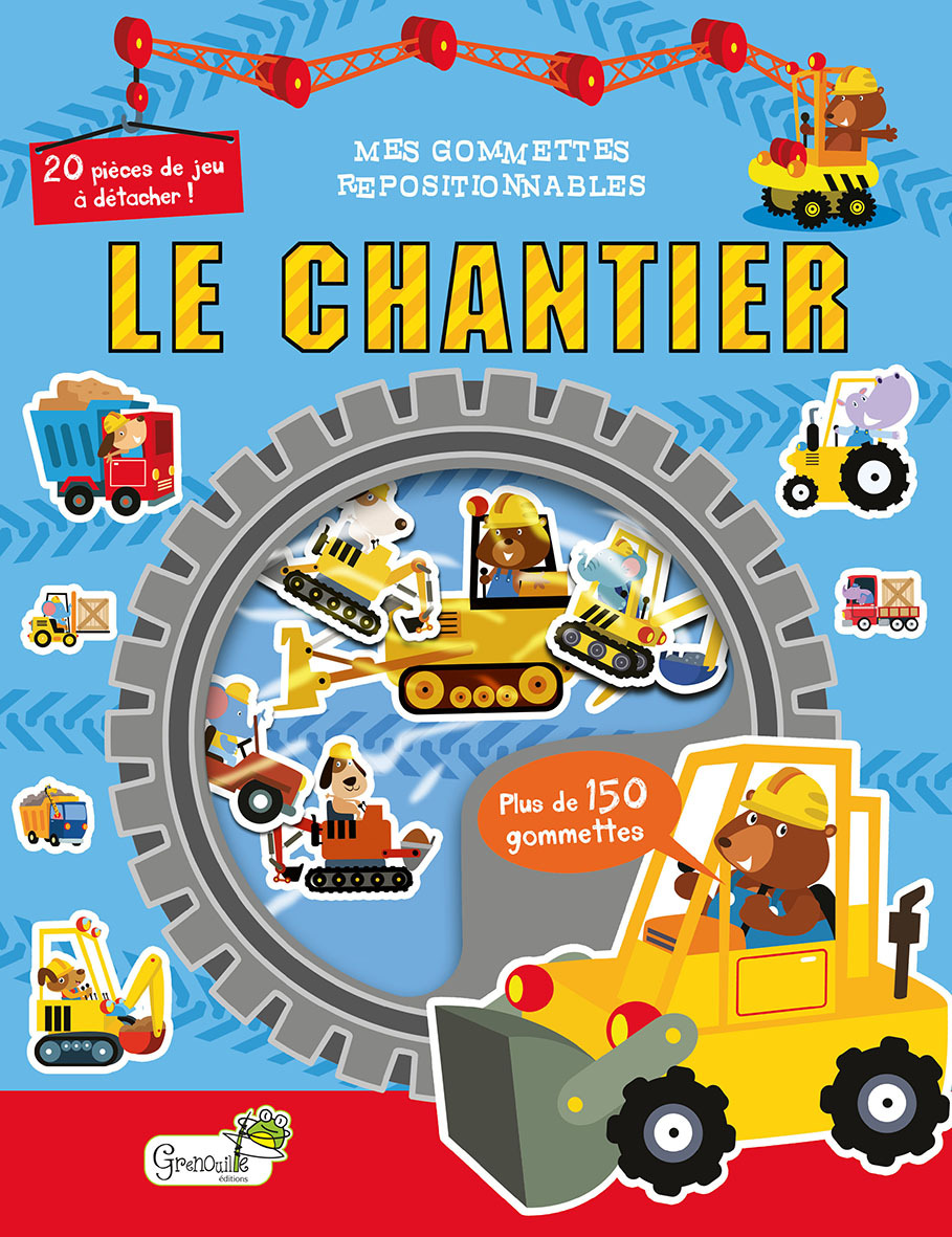 ? Un cahier d'activités sur le thème du chantier qui propose une multitude de jeux, mais également : • Des stickers « classiques », • Une pochette collée sur la 2ème de couv', contenant des stickers réutilisables à coller sur les vitres.