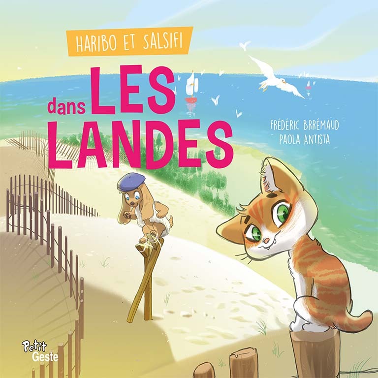 Haribo et Salsifi prennent des vacances sur la côte landaise, et dorment sur la plage. Ils accompagnent leur petite voisine, la fille des sauniers, qui fait des châteaux de sable. Salsifi, contrairement à Haribo, n’aime pas le sable, et préfère la douce toile d’un cerf-volant. Soudain le vent se lève tellement qu’une bourrasque s’en prend au cerf-volant qui s’envole. Voyant son ami partir dans les airs, Haribo s’agrippe à la ficelle, mais rien à faire, le cerf-volant s’éloigne avec nos deux amis à bord. Vue du ciel, le département des Landes est très joli. On y voit la mer, les forêts et aux loin, les premières collines qui annoncent les montagnes. Un beau territoire en effet, mais franchement, Haribo & Salsifi ont autre chose à penser. Que vont-ils devenir ? Et surtout, comment vont-ils atterrir ? Heureusement, il ne manque pas de courage, et la curiosité, les rencontres, leur font oublier les difficultés d’un tel périple. Frédéric Brrémaud est né en 1973 à Nueil les Aubiers. Après des études à La Rochelle, il intègre le centre national de la bande dessinée d’Angoulême. Il vit actuellement en Italie et sur l’île de Noirmoutier. Il scénarise des albums de bande dessinée de toutes sortes et pour tous publics en France et dans le monde. Passionnés par le monde animal, il collabore avec Federico Bertolucci, pour Love, une série de documentaires animaliers en bande dessinée publiée en Europe et aux États-Unis. Il lance aussi Les Petites Histoires, une série jeunesse, entre texte, illustration et bande dessinée, à la découverte de la nature. Née en Sicile, elle y vit et étudie jusqu’à l’Université. En 2006 elle fréquente l’académie Disney à Milan. Dès lors elle a travaillé comme illustratrice pour les maison d’édition Giunti, Fabbri, Red Whale et Mattel. Elle a aussi travaillé comme storyboard artist pour le film d’animation «Winx, Magica aventura». En France, elle dessine pour Hugo et cie la série « bd CHATS! », publiée aujourd’hui en Allemagne, Italie et Hollande, et « ALIX ET ARSENOU » avec Clair de Lune.