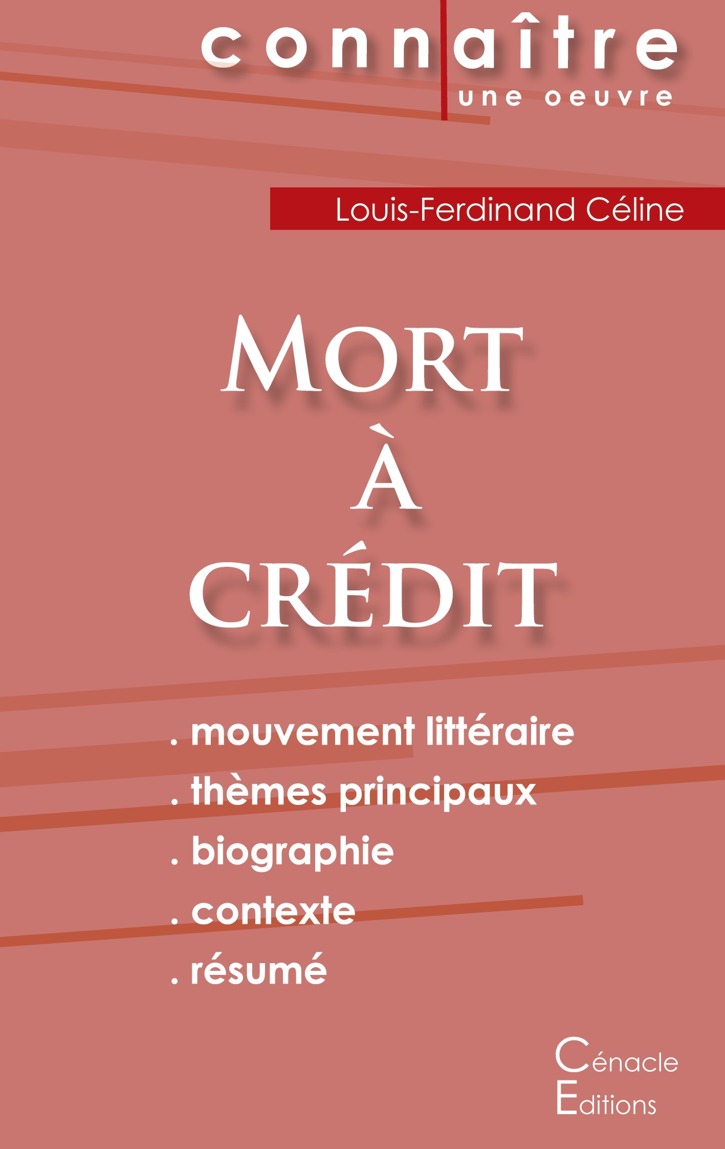 La collection « Connaître une oeuvre » vous offre la possibilité de tout savoir de Mort à crédit de Louis-Ferdinand Céline, grâce à une fiche de lecture aussi complète que détaillée. La rédaction, claire et accessible, a été confiée à un spécialiste universitaire. Cette fiche de lecture répond à une charte qualité mise en place par une équipe d'enseignants. Ce livre contient la biographie de Louis-Ferdinand Céline, la présentation du roman, le résumé détaillé (chapitre par chapitre), les raisons du succès, les thèmes principaux et l'étude du mouvement littéraire de l'auteur.