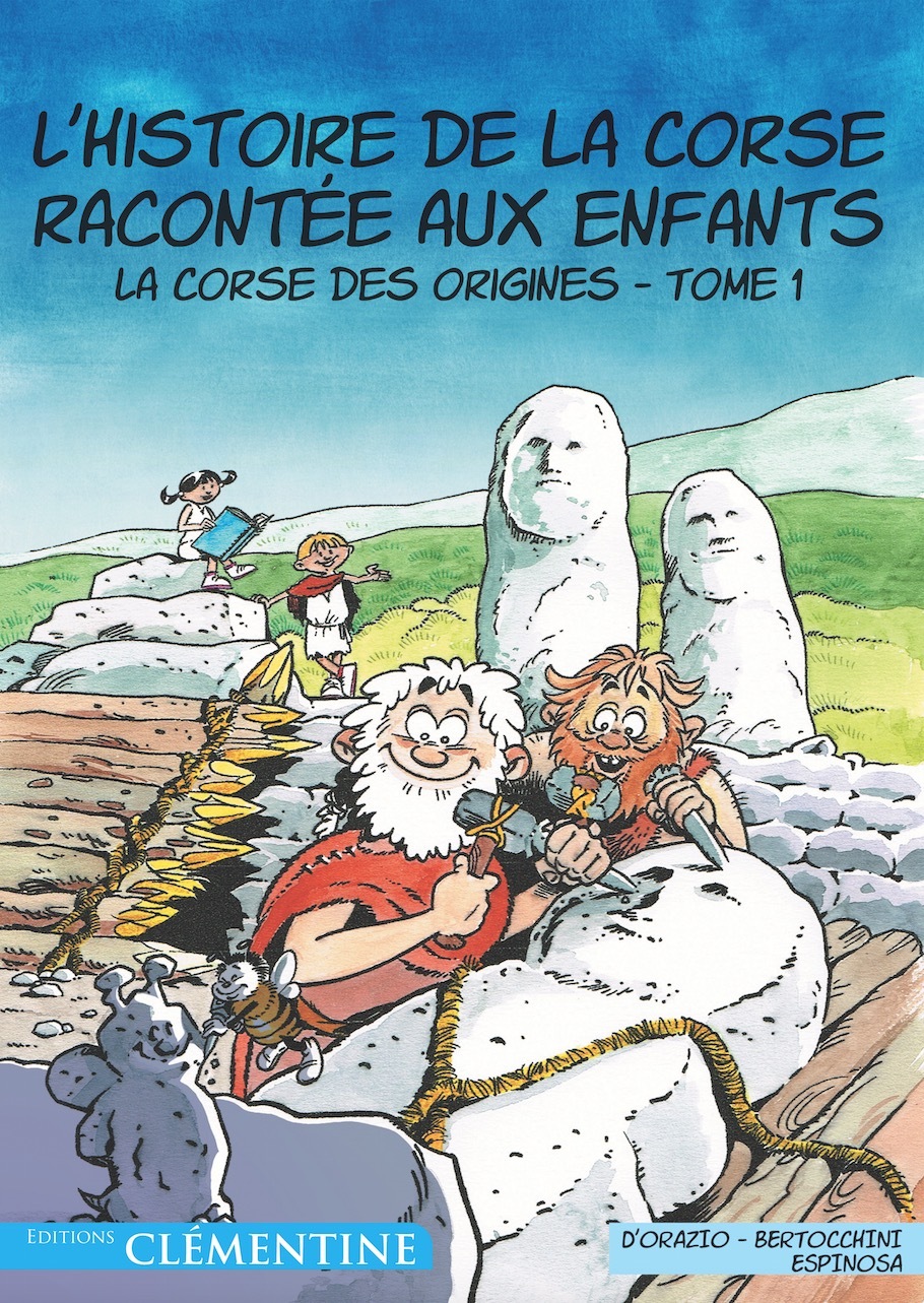 La Corse des origines – Tome 1 Dans ce premier tome, ce n’est pas encore l’Histoire mais la Préhistoire avec l’arrivée des premiers hommes en Corse! Les enfants adorent les histoires. la grande Histoire, et tout particulièrement celle de la Corse, est passionnante. Elle nous renvoie à nos racines et à notre passé commun. Elle permet aussi de mieux comprendre le monde d’aujourd’hui et d’en avoir moins peur. Aussi, lorsque Serena et Natale découvrent un livre magique, commence alors pour eux un grand voyage dans le temps. Car de la Dame de Bonifacio à Napoléon, la Corse a connu bien des héros. Des premiers échanges avec les Grecs aux événements d’Aleria, les Corses ont vécu bien des péripéties. Ces hommes et femmes, ces héros, ces rois, ces révolutions sont ainsi racontés dans un récit chronologique, ludique et captivant qui séduira autant les petits que les grands. Un moment de communauté fort, joyeux, en compagnie de l’abeille Abbabella.