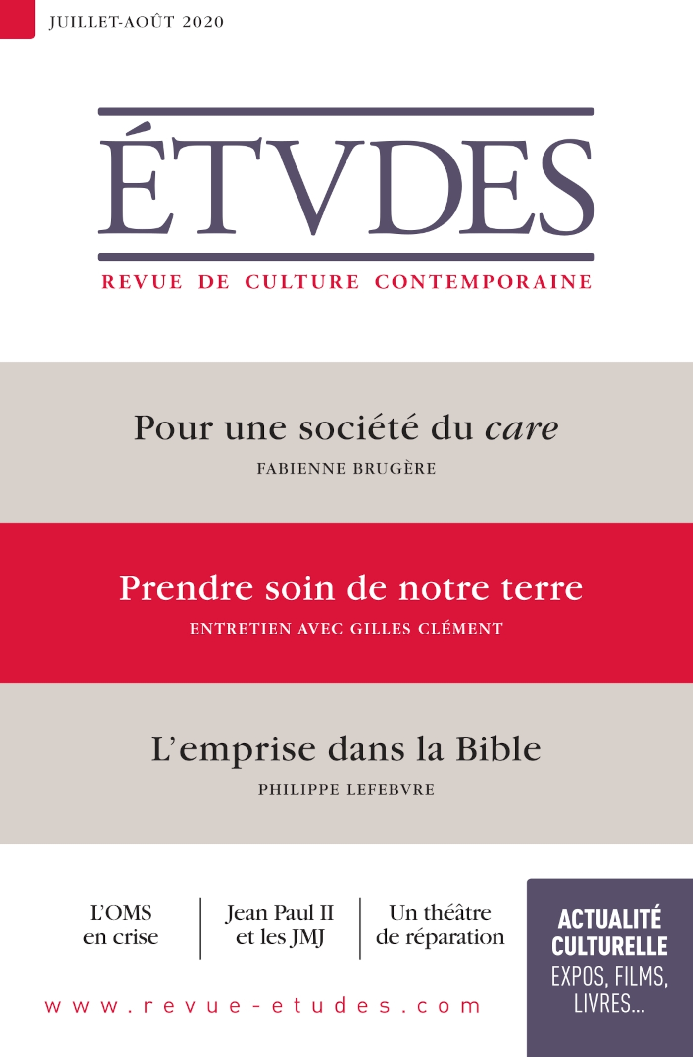 S’informer – Approfondir - Discerner Publiée depuis 160 ans par des jésuites, la revue s’inscrit dans une tradition d’un dialogue ouvert et positif avec la culture contemporaine. Elle demeure l’une des revues intellectuelles françaises les plus lues, avec une reconnaissance qui dépasse les clivages politiques et religieux. Abordant aussi bien les questions internationales que les grands enjeux de société, ou encore les débats au sein de l’Eglise, elle également réputée pour l’originalité et la sélectivité de ses carnets culturels, en particulier dans le domaine du cinéma et du livre.