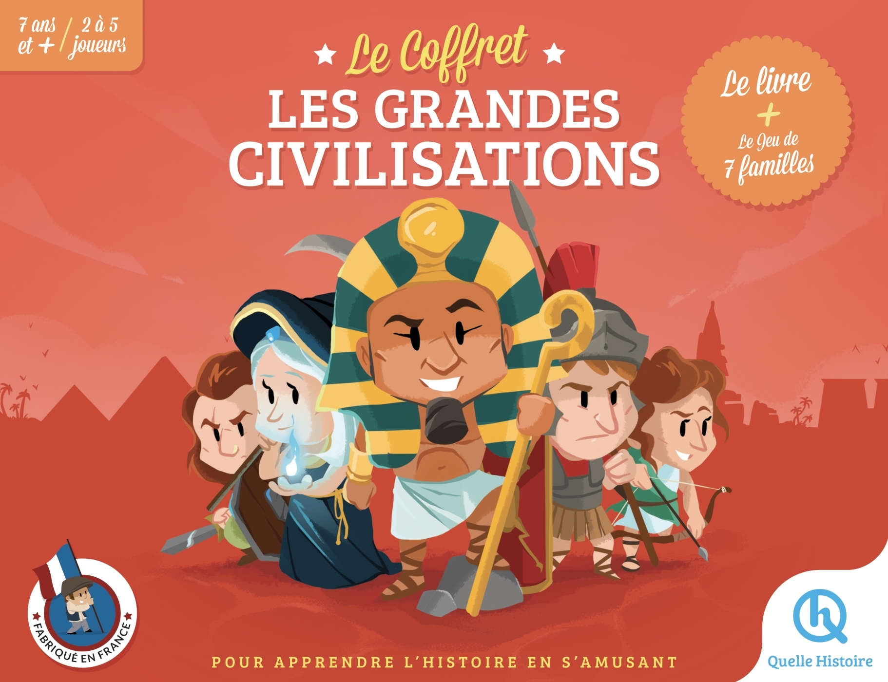 Le coffret idéal pour découvrir les grandes civilisations en s'amusant ! Ce coffret contient : -Le beau livre Les grandes civilisations Au fil des 92 pages de ce livre, découvre les grandes civilisations antiques et médiévales qui ont peuplé la terre : coutumes, conquêtes, organisations... Tout comprendre de ces civilisations n'a jamais été aussi facile ! -Le jeu de 7 familles civilisations Dans la famille perse, je demande le lieu "Babylone", avec ses jardins suspendus ! Dans la famille grecque, je demande l'objet "l'amphore" ! Amusez-vous à reconstituer les familles de chaque civilisation et que le meilleur gagne !