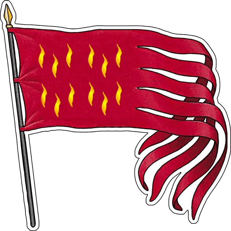 Un symbole riche de sens à arborer sur les vitres, pare-choc ou carrosserie des voitures, caravanes, bateaux... « Monjoie, saint-Denis ! » Cri de guerre des chevaliers français en reconnaissance que « saint Denis est le patron spécial et, après Dieu, le protecteur sans pareil du royaume » (Suger, abbé de St Denis, 1080-1151) Le mot oriflamme signifie flamme d'or, l'Oriflamme était à l'origine la bannière de Charlemagne. Elle était faite de taffetas rouge semé de flammes d'or, représentant les douze flammes du St Esprit reposant sur les apôtres lors de la Pentecôte. Conservée à Saint-Denis, on ne l'en sortait que lorsque des grands dangers menaçaient le royaume. Elle fut ainsi brandie à la bataille de Bouvines et aux croisades. Elle fut l'emblème des rois de France, déployée dans la dernière nécessité des batailles...