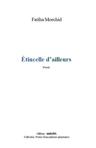 Cette distance entre l’autre et soi Entre soi et soi Se consumer À coup de froid Et chercher dans les cendres Une quelconque Étincelle d’ailleurs Échouée là Fatiha Morchid, lauréate du Prix du Maroc de Poésie 2010, est à la fois poète et romancière. Pédiatre de profession, elle a préparé et présenté un programme d'éducation sanitaire durant plusieurs années sur la chaîne de télévision 2M ainsi qu’une rubrique intitulée « Moment de poésie ». Membre de l'Union des écrivains du Maroc, Fatiha Morchid a publié sept recueils de poésie et cinq romans à succès en langue arabe. Étincelle d’ailleurs est son premier recueil de poésie en langue française.