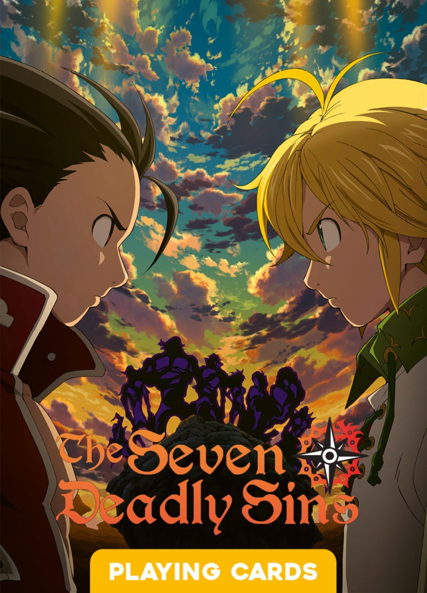 Seven Deadly Sins relate l'histoire d'une jeune fille nommée Elizabeth Liones qui part à la recherche des mystérieux chevaliers qui faisaient autrefois la fierté de Liones : les Seven Deadly Sins. Ce groupe réunissant sept grands criminels a été choisi par le roi en personne pour déjouer un complot manigancé par les chevaliers sacrés contre la royauté. Seven Deadly Sins, le jeu de cartes à jouer vous permet de retrouver vos personnages favoris dans vos parties de jeu de cartes traditionnels comme le bridge ou le poker. 54 cartes de format poker, dont 2 jokers.