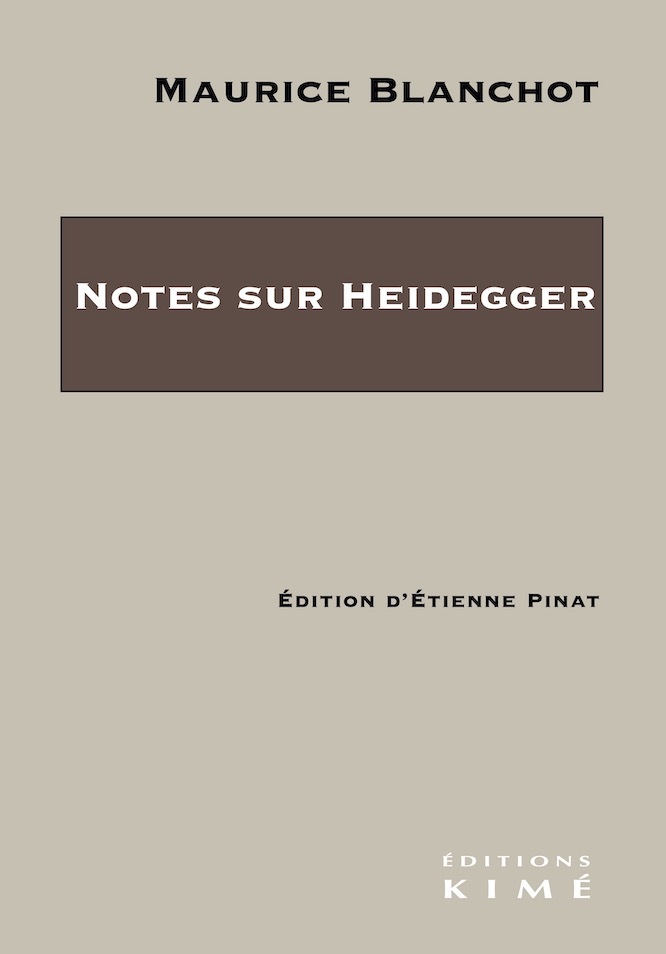 Dans une lettre de 1987, Maurice Blanchot revient dans un post-scriptum essentiel sur son rapport à l’œuvre du philosophe : « Grâce à Emmanuel Levinas, sans qui, dès 1927 ou 1928, je n’aurais pu commencer à entendre Sein und Zeit, c’est un véritable choc intellectuel que la lecture de ce livre provoqua en moi. Un événement de première grandeur venait de se produire : impossible de l’atténuer, même aujourd’hui, même dans mon souvenir » . Ce choc intellectuel se produit quelques années avant le commencement de l’œuvre critique de Blanchot et demeure en sa force jusqu’à la fin. Si, du vivant de l’auteur, le lecteur avait pu voir le nom de Heidegger réapparaître dans bien des articles, ce qui lui permettait de savoir cet intérêt, c’est seulement la mort de l’auteur qui révéla, dans ses archives, aujourd’hui déposées à la Houghton Library de Harvard, plus trois cent pages pour l’essentiel tapuscrites du travail que Blanchot aura consacré de la fin des années 40 au début des années 60 à l’étude de l’œuvre de Heidegger et de la maigre bibliographie secondaire alors existante. Excellent germaniste, Blanchot lit tout ce qui paraît en allemand, et se confronte à la difficulté de faire passer en français le travail de Heidegger sur la langue allemande, une lettre inédite de 1959 à un destinataire inconnu révélant que c’est là, à ses yeux, « l’amitié intellectuelle » que nous devons au philosophe.