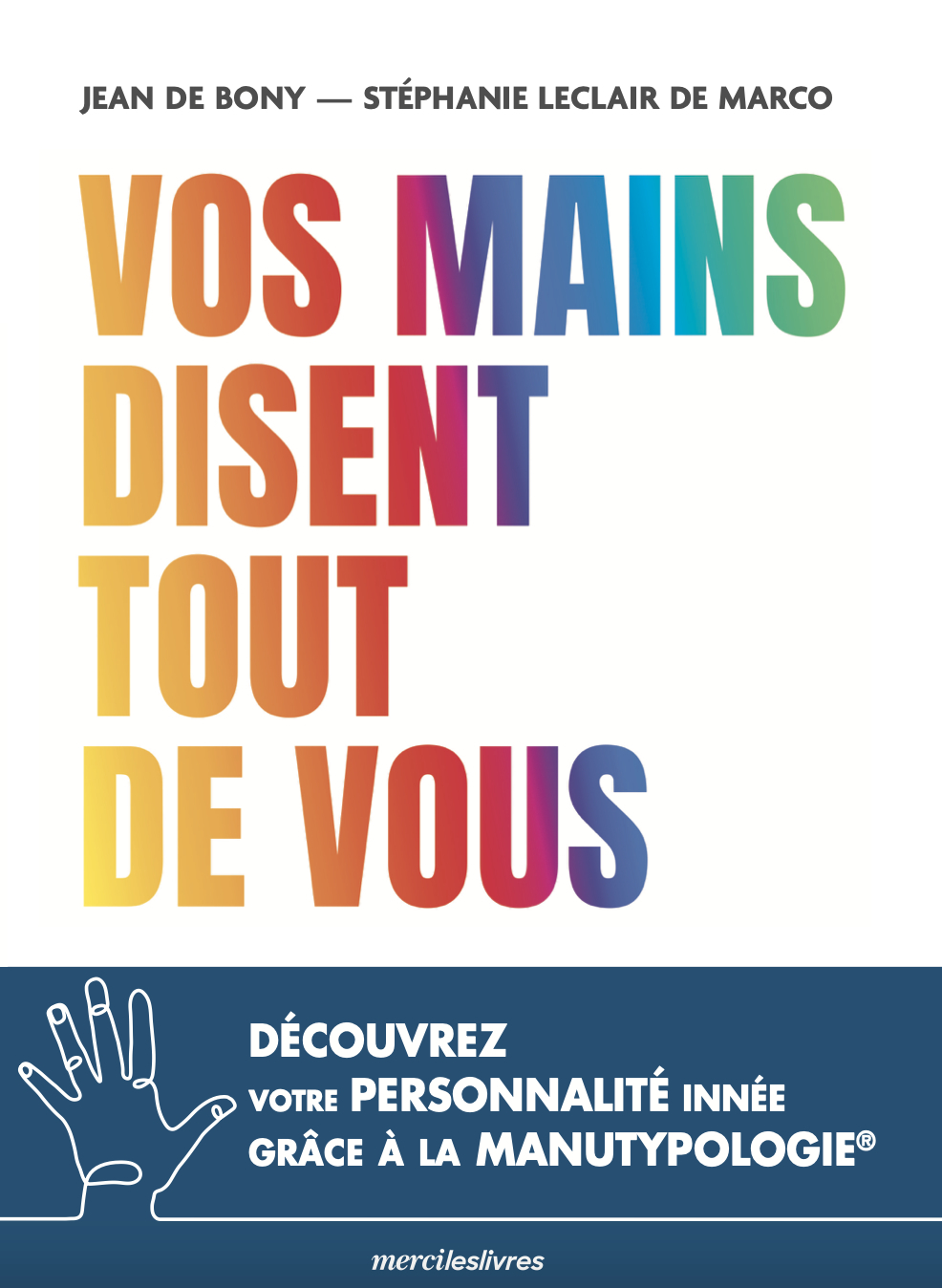 Découvrez votre personnalité innée grâce à la Manutypologie Vos mains en disent long sur votre tempérament. Regardez-les, touchez-les, analysez leurs caractéristiques (forme de la paume, des doigts et des ongles, empreintes digitales, température…) en vous aidant de cet ouvrage consacré à la Manutypologie®. Méthode originale, concrète et universelle, patiemment mise au point par un chercheur émérite, la Manutypologie® révèle votre potentiel inné et vos aspirations naturelles. Et vous permet d’accéder à l’harmonie que nous recherchons tous. Comme la Présidente-Directrice générale de Picard Surgelés Cathy Collart Geiger, la journaliste Sonia Mabrouk, le chef étoilé Guy Savoy, l’écrivain David Foenkinos et d’autres encore décrits dans ce livre, découvrez un potentiel insoupçonné : le vôtre.