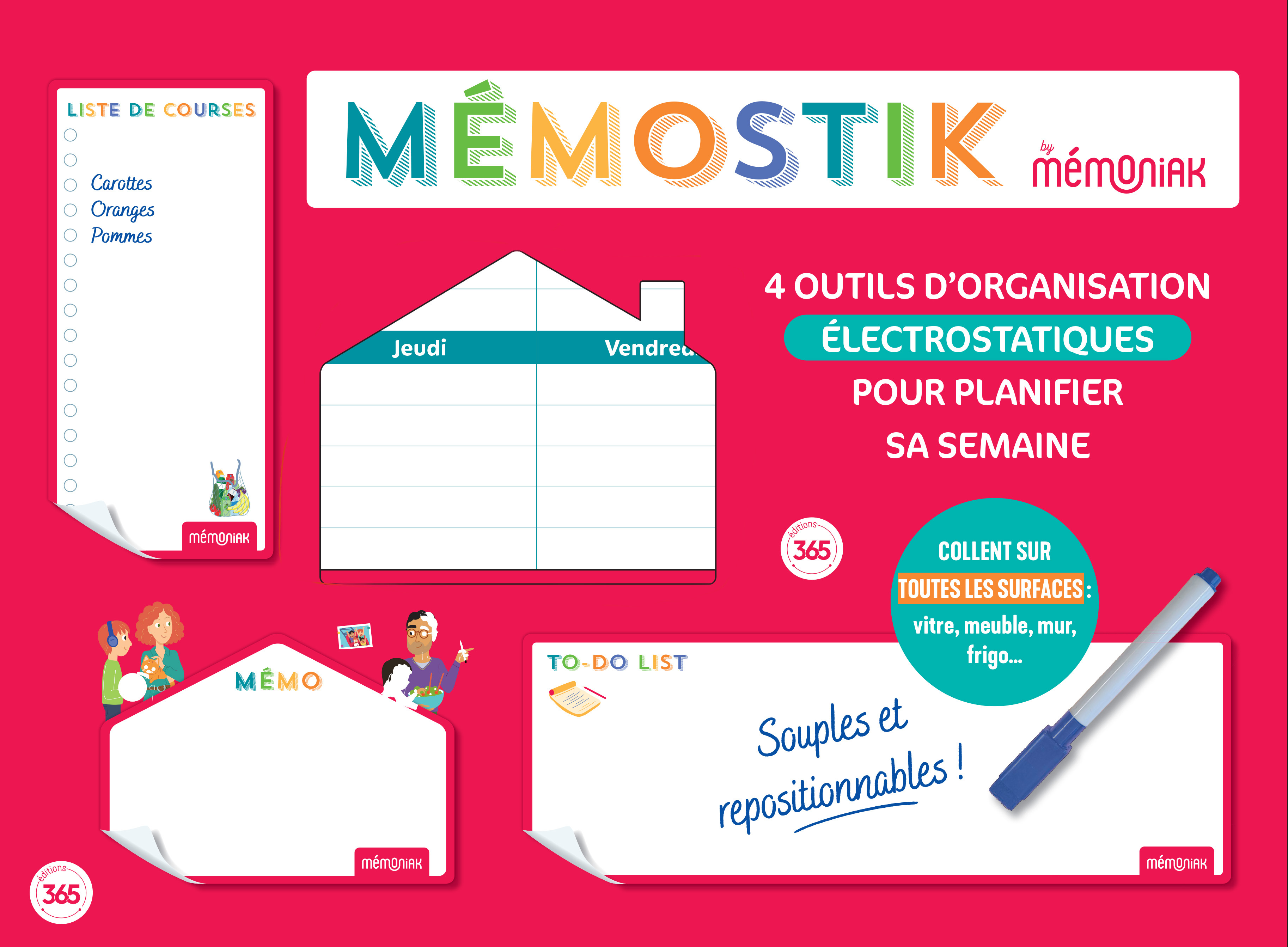 Mémostik by Mémoniak - 4 outils stickers électrostatiques pour organiser le quotidien