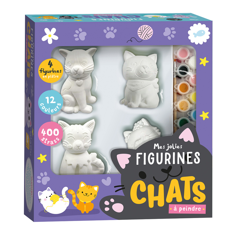 Un coffret très complet pour peindre et décorer 4 figurines en plâtre. Dans ce coffret, les jeunes enfants -et les plus grands- vont trouver 4 chats en plâtre, 12 petits pots de peinture, 2 pinceaux en bois (un plat et un fin), 10 cartes à colorier et plus de 400 strass autocollants pour réaliser de superbes décorations. Une chouette activité créative à partager en famille !