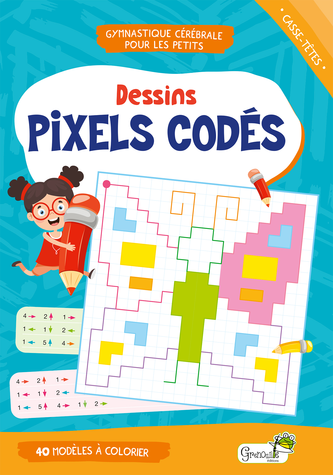 40 modèles de nonogrammes adaptés aux enfants pour des heures de concentration puis de coloriage. Les nonogrammes sont des casse-têtes graphiques dans lesquels les cases d'une grille doivent être coloriées ou laissées blanches en fonction des indications fournies. Le dessin caché apparaîtra alors peu à peu.