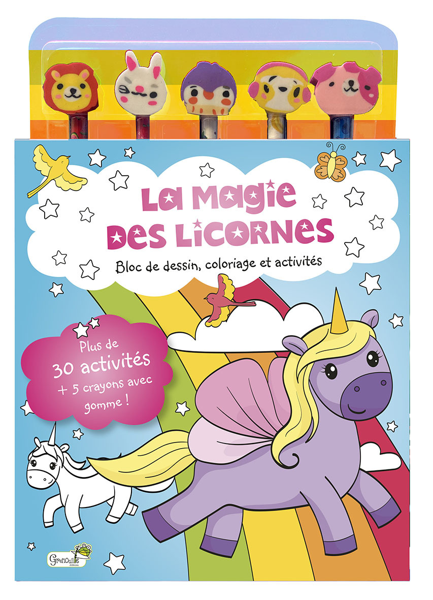 LA MAGIE DES LICORNES - BLOC COLORIAGE ET ACTIVITES + 5 CRAYONS AVEC GOMME