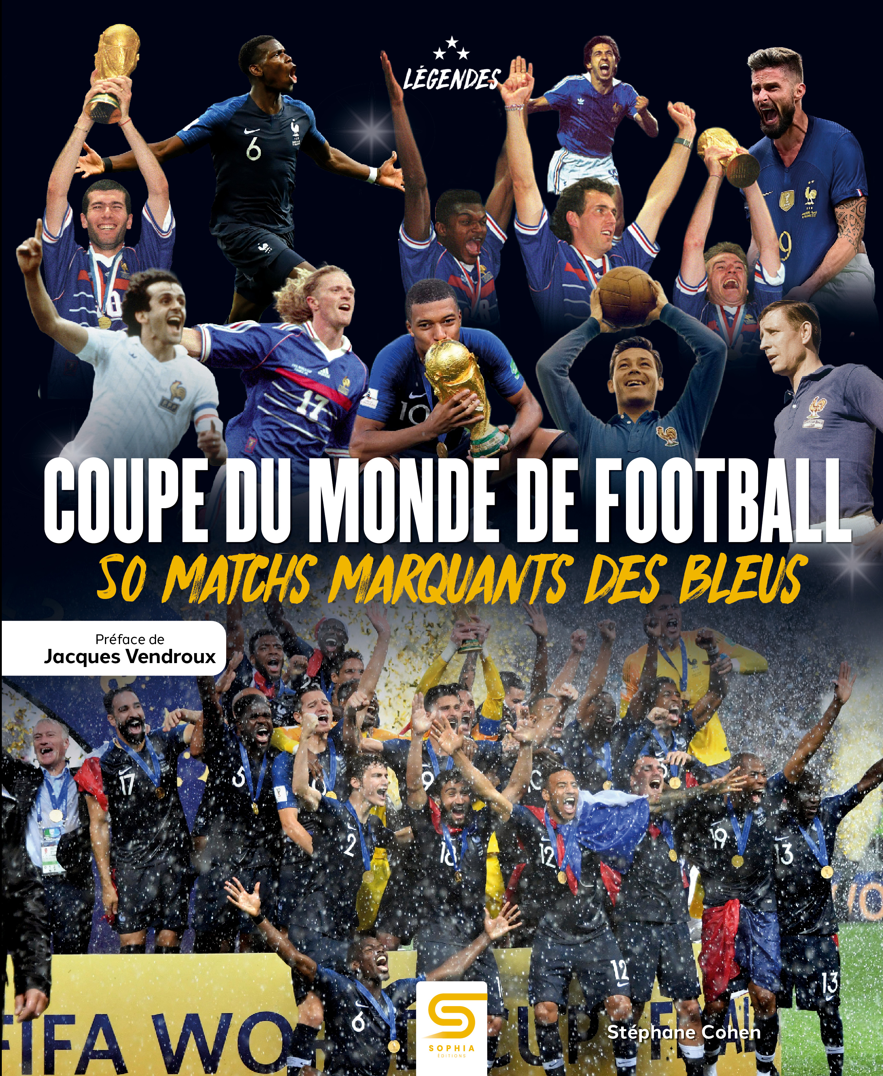 Depuis près d’un siècle, l’équipe de France a noué une relation amoureuse avec la Coupe du monde. Deux titres historiques (1998 et 2018), deux finales perdues de peu (2006 et 2022) et combien de matchs irrespirables au sommet desquels le France-RFA de 1982 ! Depuis près d’un siècle, l’équipe de France a noué une relation amoureuse avec la Coupe du monde. Deux titres historiques (1998 et 2018), deux finales perdues de peu (2006 et 2022) et combien de matchs irrespirables au sommet desquels le France-RFA de 1982 ! L’histoire de la France en Coupe du monde, ce sont aussi des moments cocasses (les maillots vert et blanc du France-Hongrie 1978), des déceptions XXL (Bulgarie 1993 en phase de qualifications pour la World Cup 1994 aux États-Unis) ou bien encore de véritables chefs-d’œuvre de football (France-Brésil 1986)… Voici l’histoire de la France en Coupe du monde à travers cinquante matchs mythiques ! • Tous les résultats de l’équipe de France • Des anecdotes sur les joueurs Français • Les matchs inoubliables de 1930 à 2022 • Les plus belles photos de l’histoire des Bleus
