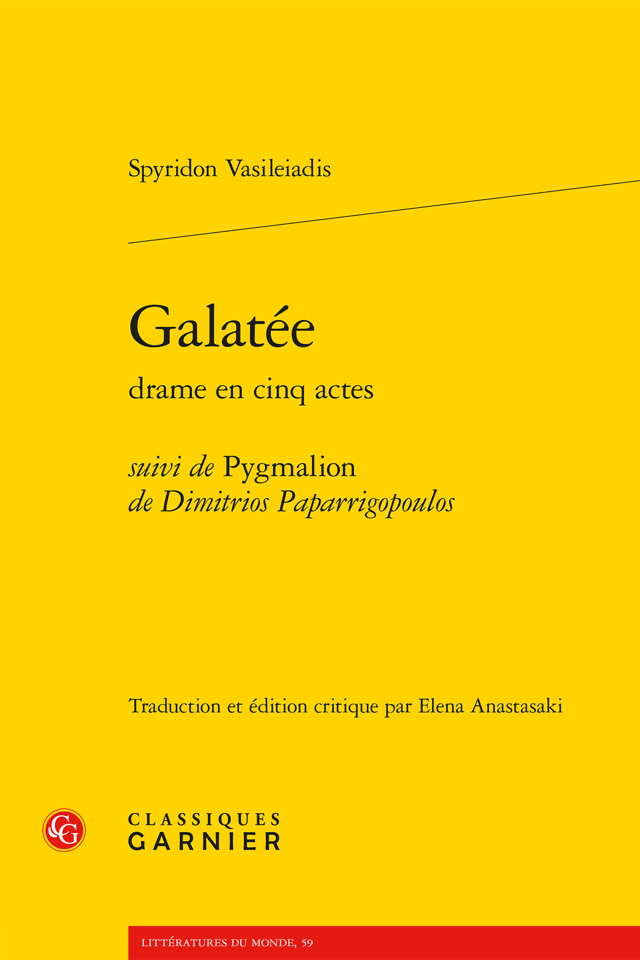 Galatée de Spyridon Vasileiadis, est un drame du romantisme tardif grec qui combine le mythe de Pygmalion avec le chant populaire grec La Femme infidèle dans une allégorie à répercutions nationales, où se confrontent amour romantique et amour fraternel. Il est suivi du Pygmalion de Dimitrios Paparrigopoulos.
