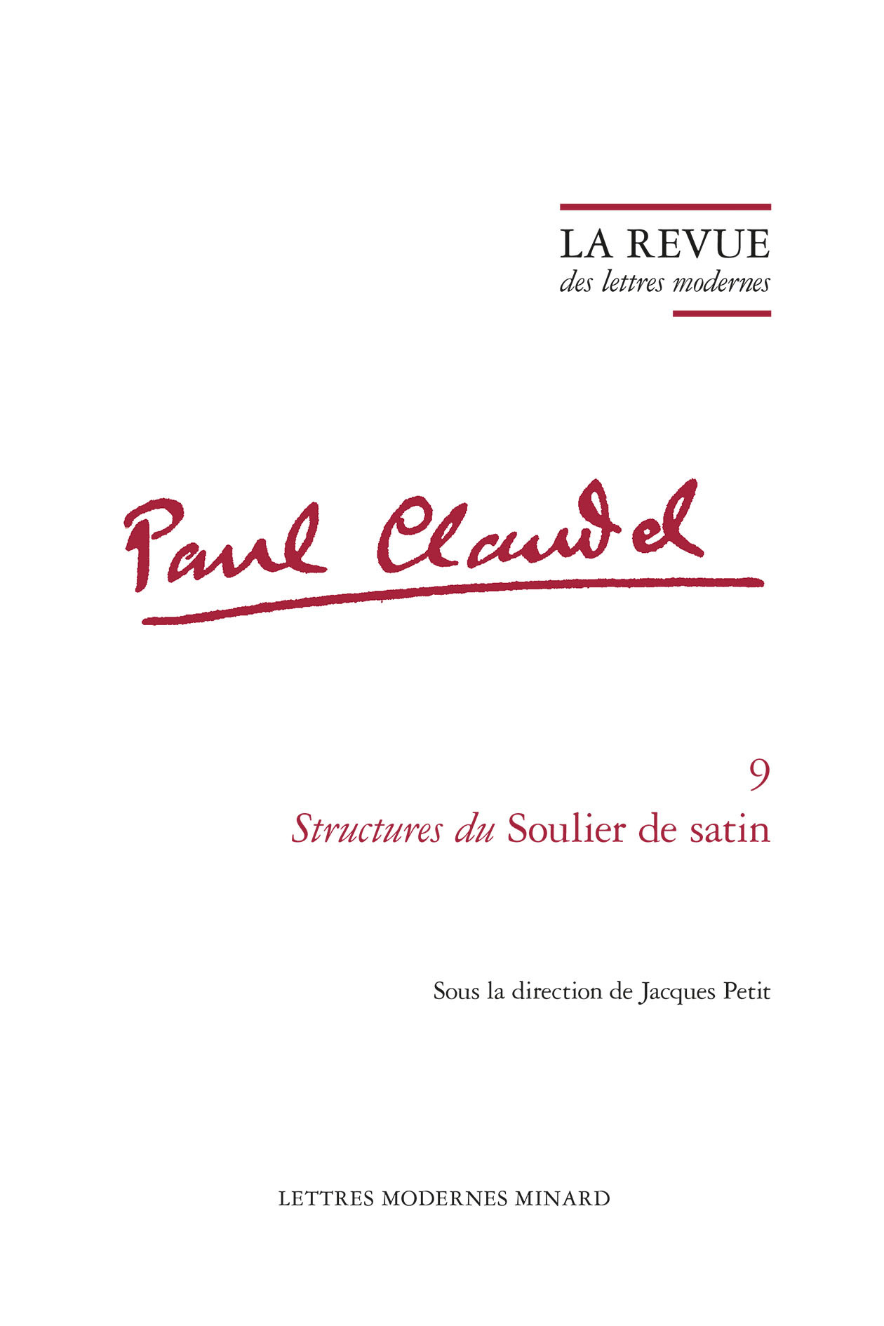 Cet ouvrage rassemble cinq études dramaturgiques du Soulier de satin sur le temps, l'espace, les ambivalences du réseau d'identités et d'oppositions dans la pièce, le thème de l'échec de la conquête et les jeux du double, qui structurent la pièce et le réseau des personnages.