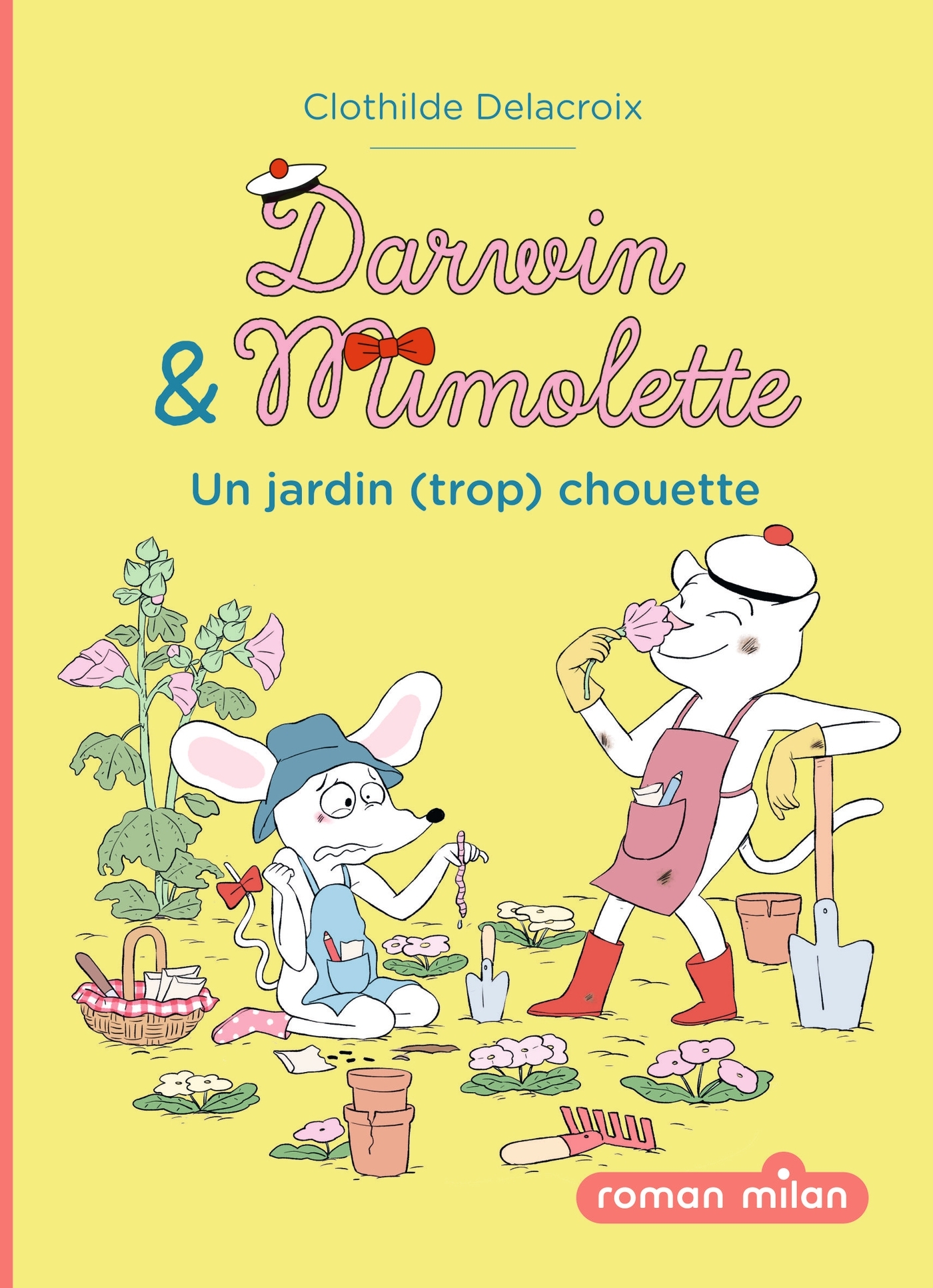 Les beaux jours sont revenus ! Darwin n'a qu'une envie : passer son temps au jardin ! Voilà comment il devient jardinier en chef. Il consulte des piles de catalogues, commande mille et un sachets de graines, et rêve à ses plantations ! Évidemment, il veut entraîner son amie Mimolette dans sa nouvelle passion. Mais la pauvre souffre soudain d'une grosse allergie. Oh mince, elle ne peut plus patouiller dans la terre et rigoler avec les vers de terre ! Enfin, ça, c'est ce que croit Darwin... Deux héros que tout oppose, mais dont l'amitié est indestructible On ne se lasse pas de voir Darwin, le chat cool, et Mimolette, la souris sérieuse, se chamailler, puis se rabibocher et prendre soin l'un de l'autre ! À tour de rôle, ils nous confient leurs états d'âme dans leur journal de bord. Une lecture tendre et pleine de malice. Les « Roman Milan 6+ », des tout premiers romans pour prendre goût à la lecture ! Une série créée par Clotilde Delacroix, richement illustrée, dans une mise en pages ultradynamique proche de la BD. Et en bonus : deux pages avec des questions pour ouvrir la discussion autour de l'histoire.