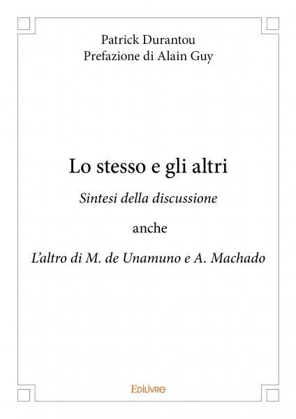 Ce long essai philosophique consiste dans ses trois grandes parties dans une confrontation des doctrines de M. de Unamuno et d'A. Machado précédées d'une large introduction de la question du même et de l'autre telles qu'elles subsument celle-ci avec insistance en latence ou régulièrement. L'auteur, Patrick Durantou, connaisseur des deux penseurs ibériques, nous livre ici avec érudition et finesse l'examen de cette interrogation.