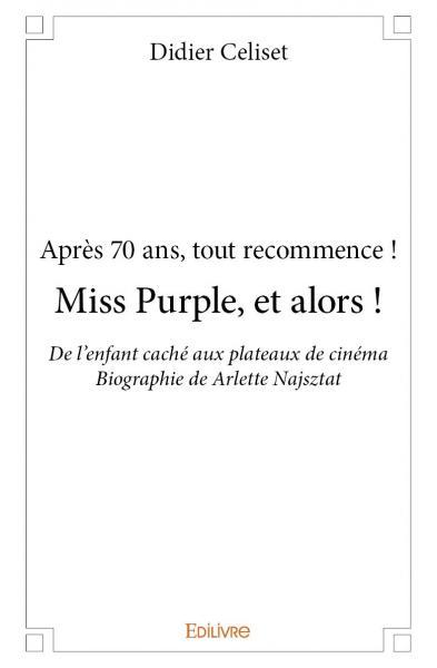 Miss Purple, et alors ! Ce livre allie le courage et le hasard, l'ombre et la lumière. Arlette poursuit son chemin à l’instinct, avec abnégation, timidité et témérité mêlées. Elle vit aussi un grand amour durant quarante-quatre ans ! Et commence sa seconde vie ! À 70 ans ! Aujourd’hui, les gens du métier l’appellent Miss Purple. Vous allez découvrir son parcours, ses rencontres, son territoire intérieur, sa lucidité, ses failles. Arlette Najsztat a tourné dans plus de 135 films.