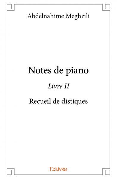 Le distique élégiaque était utilisé par les gnomiques puis par les épigrammatiques pour des sentences morales ou autres, mais il est surtout connu par les Alexandrins, dont le plus illustre représentant est Callimaque de Cyrène. C'est à la plainte lyrique, notamment amoureuse, et au récit mythologique que le distique élégiaque a été le plus associé. La métrique bivalente de ce distique, qui part d'un élan initial (l'hexamètre, vers de l'épopée) pour se briser avec le pentamètre, lui donne un rythme spécifique, fait d'envolées et de retombées, qui a pour effet de syncoper le discours… Cela relève des anciennes littératures grecque et latine. Aussi le distique prend d’autres formes solfiées en alexandrins ou en décasyllabe ou alexandrin secondé en décasyllabe traitant de plusieurs thèmes : du temps, de la vie, de l’amour de la nature, de l’amour des lettres et des arts… Notes de piano chante sur divers airs ces thèmes qui tombent en mélodiques phrases sur le blanc clavier.
