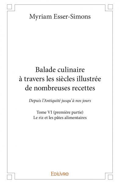 Le Tome VI (première partie) de notre ouvrage Balade culinaire à travers les siècles (allant de l’Antiquité jusqu’à nos jours) est consacré au riz et aux pâtes alimentaires. Le riz, cette céréale dont la culture a débuté en Asie, plusieurs millénaires avant notre ère, occupe aujourd’hui une place importante sur toutes les tables d’Europe. Il intervient dans des préparations tant salées que sucrées. Les pâtes alimentaires, quant à elles, feront ici l’objet d’un large éventail historique, étayé de nombreuses recettes anciennes et modernes, allant de l’Antiquité jusqu’aux chefs étoilés actuels. Cette première partie du Tome VI se termine par des références bibliographiques et des sources informatiques.