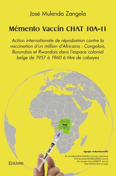 Le présent mémento renseigne sur les conditions de la fabrication du vaccin " CHAT " dans le laboratoire médical de Stanleyville au Congo belge et son administration à plus d'un million d'Africains : Congolais, Burundais et Rwandais de 1958 à 1960 à titre expérimental. Cet ouvrage dénonce les violations en matière d'éthique médicale et démontre les responsabilités conséquentes des auteurs et co-auteurs américains et belges, en matière pénale et administrative. Le Comité de Soutien et de Plaidoyer pour la Région des Grands Lacs Africains, CSP-REGLA lutte, à travers cet ouvrage, pour le triomphe de la justice et la vérité, afin d'honorer les populations du Congo et du Ruanda-Urundi abusées. Il tient ainsi à porter sa contribution au débat actuel sur les dérives de la vaccination à travers le monde, et notamment en Afrique.