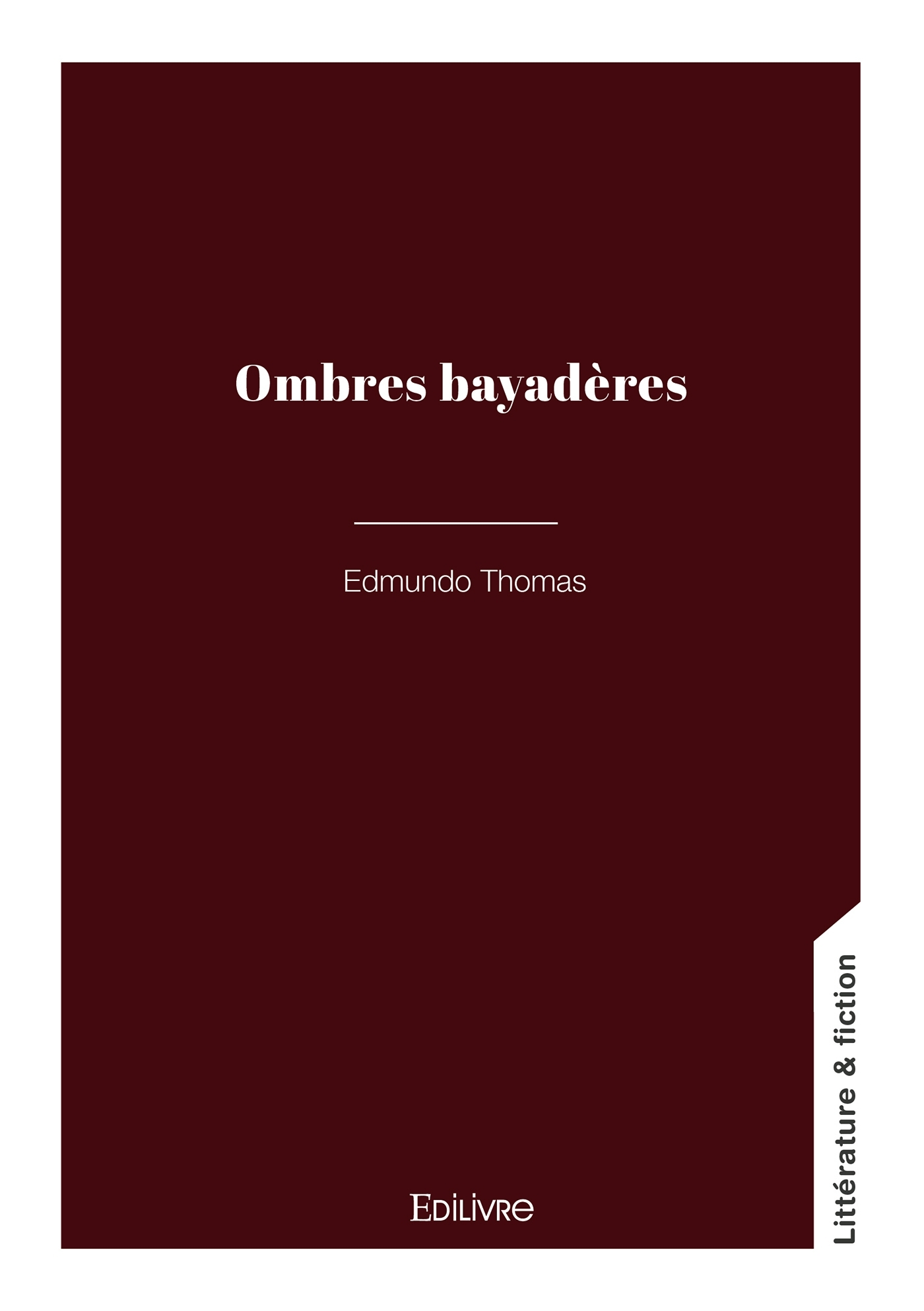 L'oeuvre poétique Ombres bayadères rassemblant des nouvelles, des à propos et poèmes de l'auteur, porte en elle les émotions pures de ressentis enfouis dans sa mémoire évocatrice, aussi vive que ses sentiments à l'égard de la nature humaine qui l'habite.Ce nouveau reflet de la création littéraire d'Edmundo Thomas nous emporte dans une épopée inspirée et voluptueuse à souhait. Ce voyage nous entraîne par les chemins de la vie où les ombres révèlent à son coeur une réflexion toute personnelle dont la texture du tissu aux multiples couleurs, inspire son écriture allant gaiement danser dans la tendresse de la soie, la chaleur de la laine, par les boucles mohair ou le velours cachemire...
