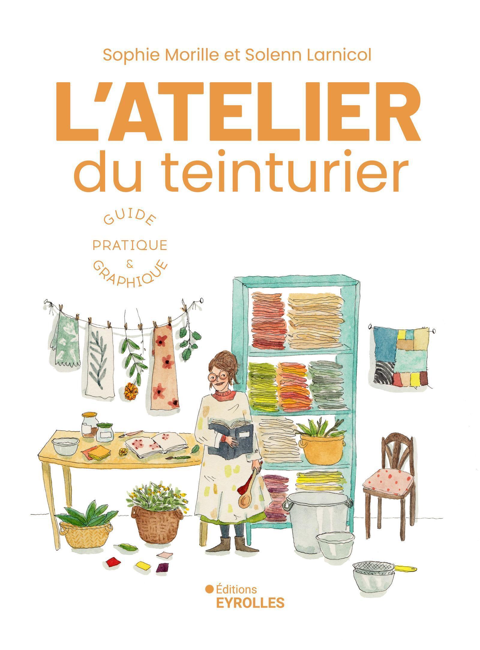 Apprendre la teinture en dessin ! Un guide pratique à 4 mains (Solenn Larnicol, illustratrice, et Sophie Morille, teinturière) d'un nouveau genre pour apprendre la teinture, entièrement dessiné. Les dessins de Solenn Larnicol guideront pas à pas le débutant dans sa pratique et l'entraîneront dans les coulisses de l'atelier de Sophie Morille.
