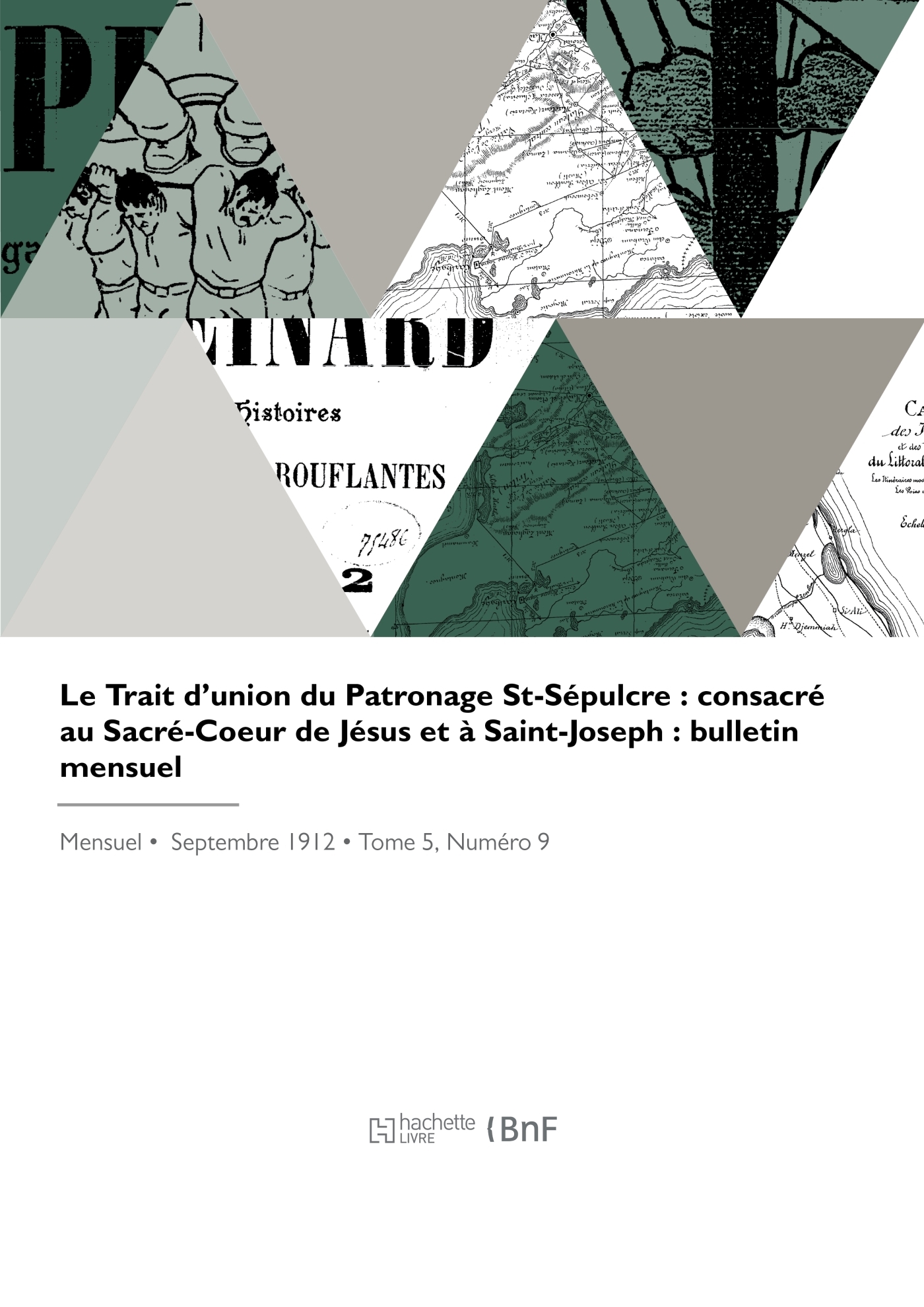 Le Trait d'union du Patronage St-Sépulcre : consacré au Sacré-Coeur de Jésus et à Saint-Joseph : bulletin mensuel Date de l'édition originale : 1912-09 La présente revue s'inscrit dans une politique de conservation patrimoniale de la presse française mise en place avec la BnF. Hachette Livre et la BnF proposent ainsi un catalogue de titres indisponibles, la BnF ayant numérisé ces publications et Hachette Livre les imprimant à la demande. Certains de ces titres reflètent des courants de pensée caractéristiques de leur époque, mais qui seraient aujourd'hui jugés condamnables. Ils n'en appartiennent pas moins à l'histoire des idées en France et sont susceptibles de présenter un intérêt scientifique ou historique. Le sens de notre démarche éditoriale consiste ainsi à permettre l'accès à ces revues sans pour autant que nous en cautionnions en aucune façon le contenu. Pour plus d'informations, rendez-vous sur www.hachettebnf.fr