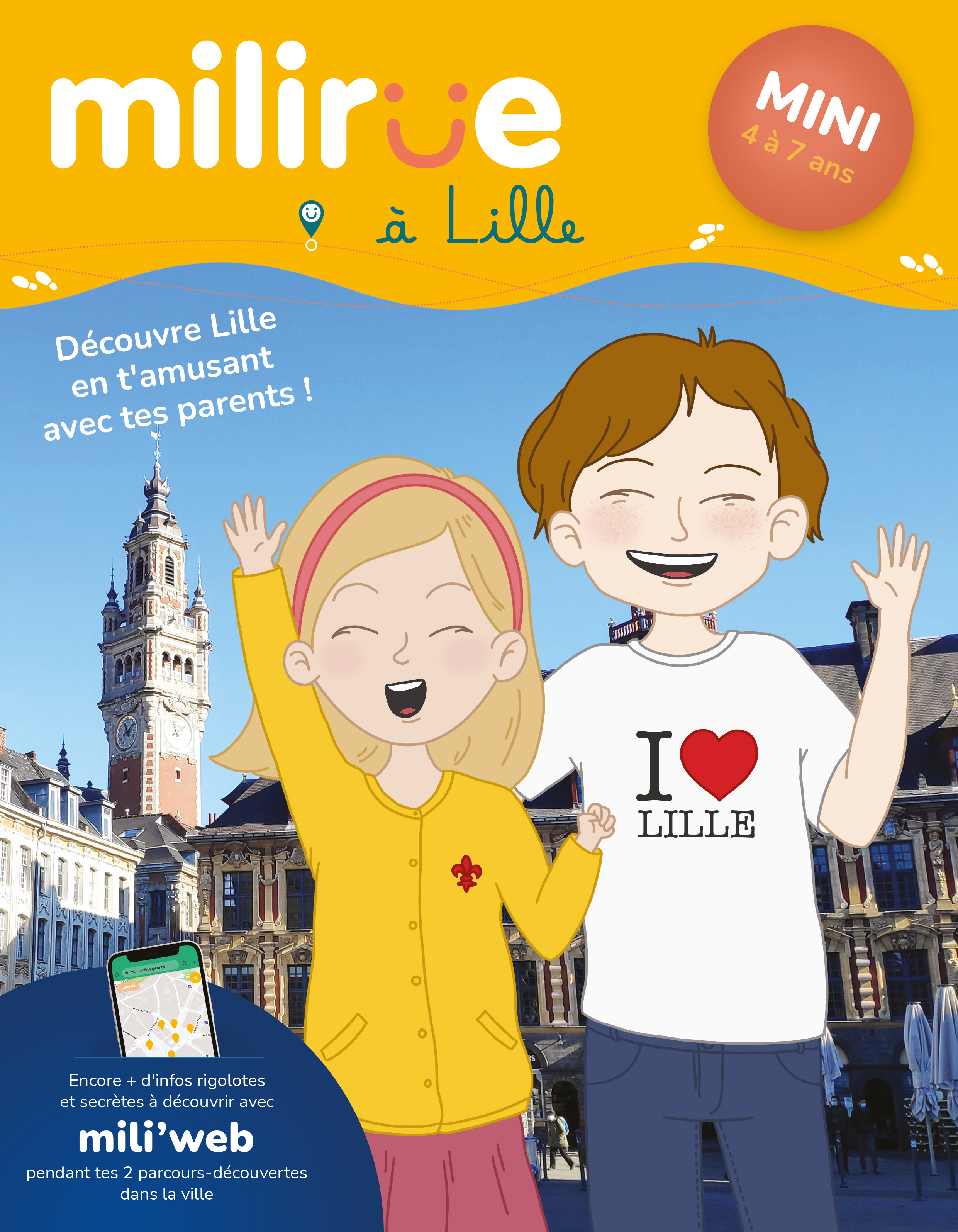 Grâce à ton carnet, tu vas pouvoir préparer ta visite de Lille avec une histoire à écouter, des jeux et des infos rigolotes. Ensuite, hop, on part à l'aventure ! Flore et Basile t'emmènent avec eux dans le centre-ville et le Vieux-Lille pour 2 balades en famille qui te permettront de découvrir tous les secrets de Lille. Es-tu prêt(e) à partir à la découverte de Lille ? Dans ton carnet, il y a : - 2 parcours-découvertes d’1h30 chacun - 6 pages de jeux, d’activités et d’infos pour bien préparer ta visite - l’accès à mili’web, la carte interactive - un espace pour raconter et coller tes petits souvenirs - plein d’autres surprises à découvrir !