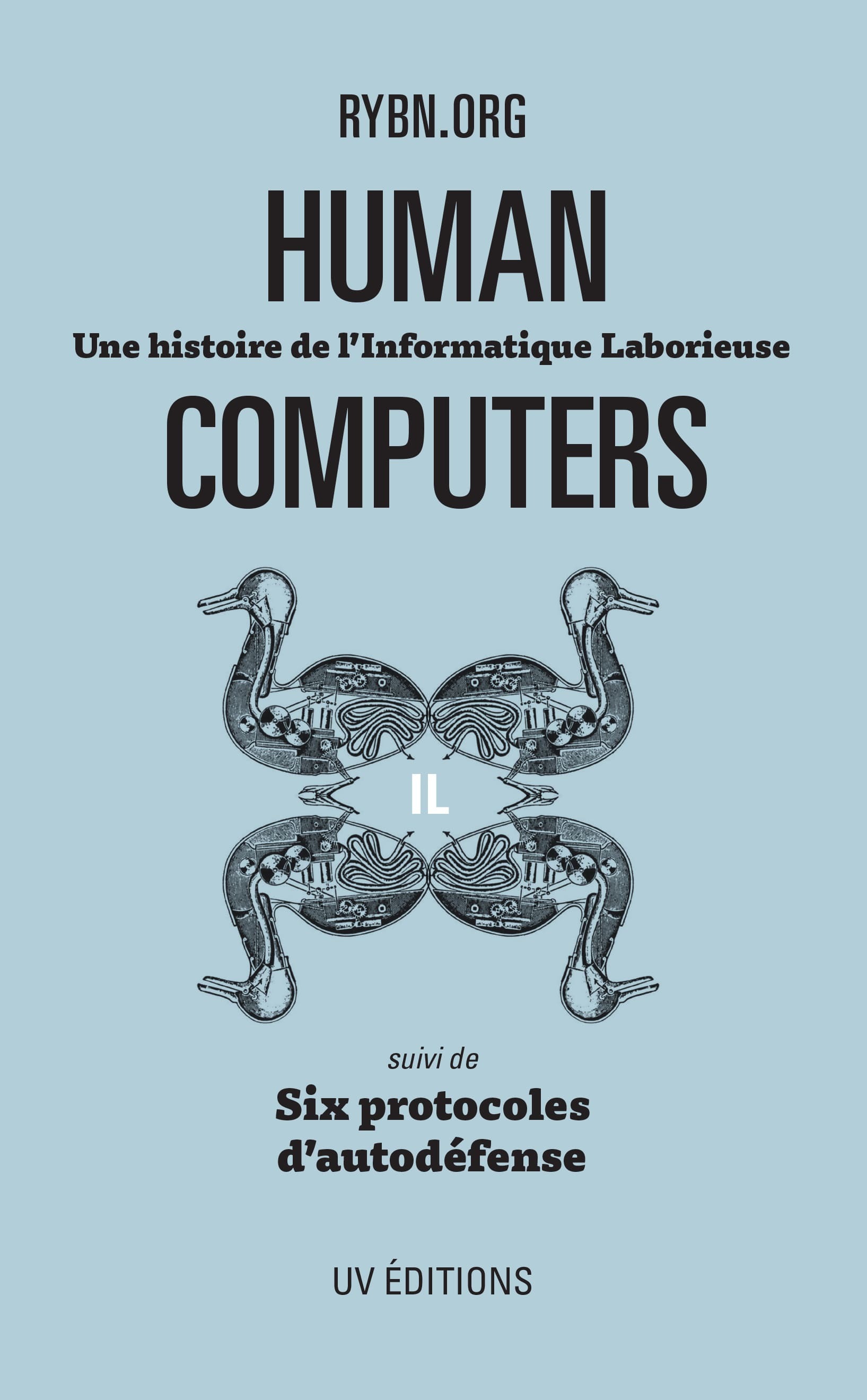 Qu’est-ce que l’Informatique Laborieuse ? C’est le nom que RYBN.ORG donne à l’Intelligence Artificielle et aux processus informatiques qui incorporent du travail humain, faisant de cette industrie le nouveau laboratoire du management. C’est l’une des conclusions de l’enquête Human Computers, que le collectif mène depuis 2013, et qui vise à démêler l’enchevêtrement qui s’est noué entre informatique et capitalisme, avec l’organisation du travail pour prisme d’analyse principal. L’hypothèse est la suivante : le travail humain n’est ni obsolète, ni même une béquille provisoire dans l’attente de cette autonomie, partielle ou totale, dont l’informatique nous fait la promesse, mais se trouve structurellement au coeur des processus automatisés, et ce, depuis la toute première manufacture de calcul de Gaspard de Prony en 1793 jusqu’aux grands modèles de langage actuels. Un cahier iconographique vient présenter les formes artistiques issues de la recherche Human Computers. En contrepoint, les Six protocoles d’autodéfense permacomputationnelle contre l’Informatique Laborieuse proposent une boîte à outils d’expérimentations visant à rompre avec l’IA, en s’attaquant à sa géopolitique extractiviste, sa logique algorithmique, ses formes d’apprentissage réductionnistes et sa technovlangue.