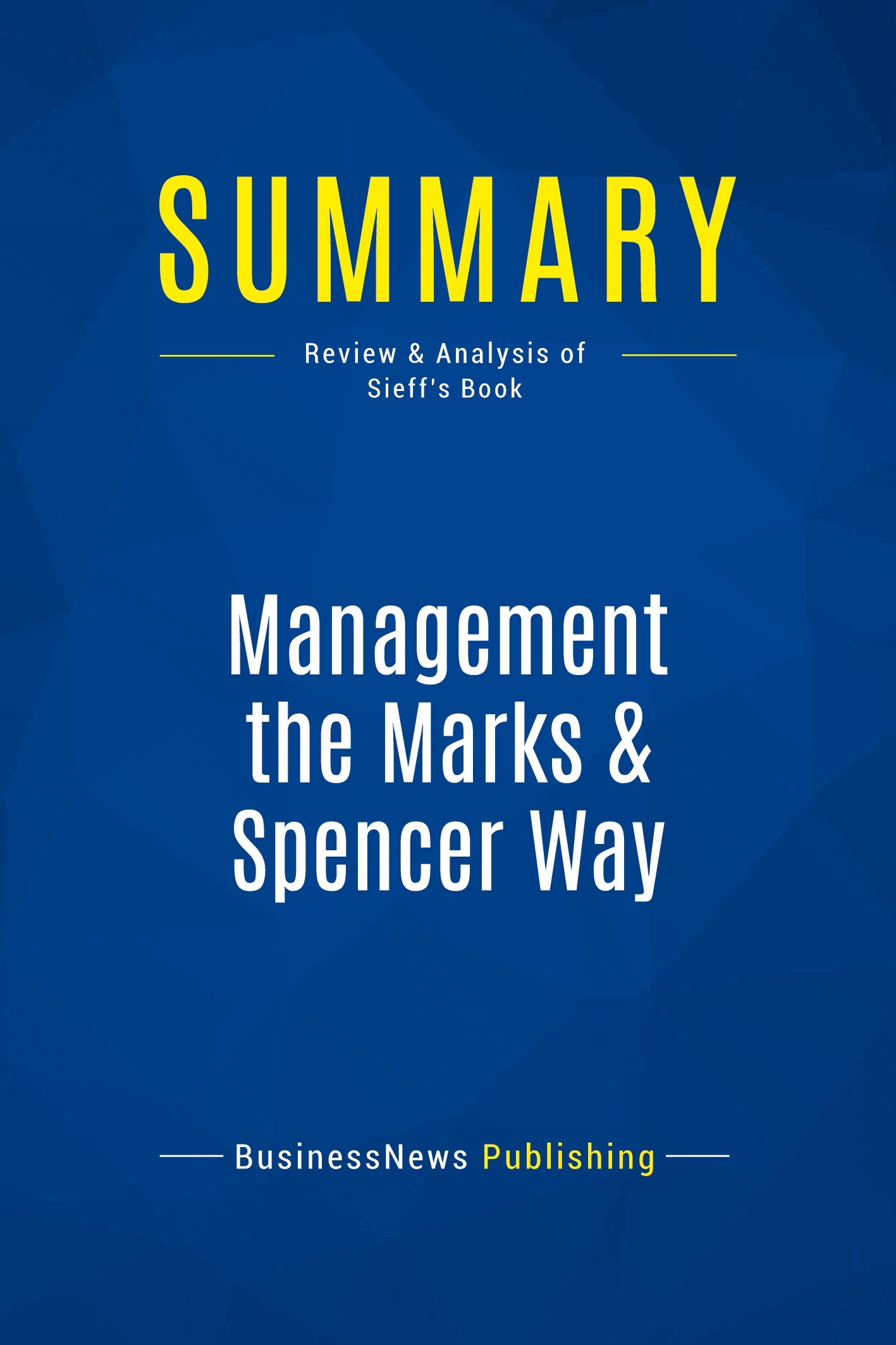 The must-read summary of Marcus Sieff's book: "Management the Marks & Spencer Way: Lead, Motivate and Succeed". This complete summary of the ideas from Marcus Sieff's book "Management the Marks & Spencer Way" shows that in business, in management and in life, a winning philosophy consists of 4 key factors: good relationships, commitment to quality and improvement, a spirit of co-operation and support for worthwhile community projects. In his book, the author explains how M&S has remained a top company by focusing on its customer and he analyses how good businesses create excellent interpersonal relationships He divides his recommendations into 10 themes; this summary demonstrates each of the themes and how they can help you on your way to success. Added-value of this summary: • Save time • Understand key concepts • Expand your knowledge To learn more, read "Management the Marks & Spencer Way" and discover management techniques that have ensured success for the world's biggest companies.