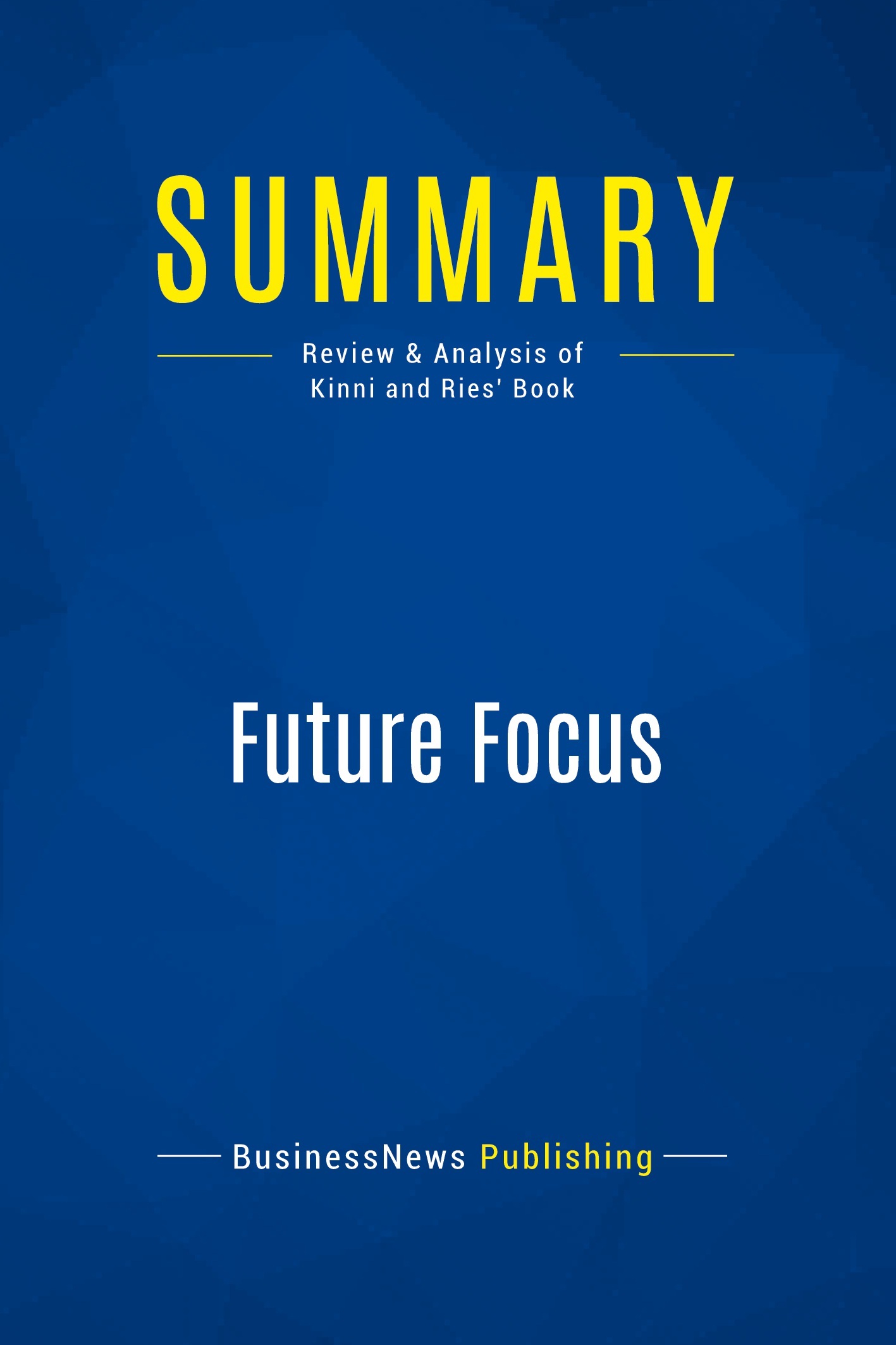 The must-read summary of Theodore Kinni and Al Ries' book: "Future Focus: How 21 Companies Are Capturing 21st Century Success". This complete summary of the ideas from Theodore Kinni and Al Ries' book "Future Focus" raises an essential question: What are the ingredients of 21st century corporate success? Using quantitative and qualitative criteria, the authors have identified a list of 21 companies that have achieved success. In their book, Kinni and Ries reveal the qualities that all of these companies have in common and how you can learn and profit from their example. This summary is an excellent guide for business owner and executives who want to learn from the best. Added-value of this summary: • Save time • Understand key concepts • Expand your business knowledge To learn more, read "Future Focus" and discover how you can learn from the practices of the most successful companies to guarantee your own success in the 21st century.