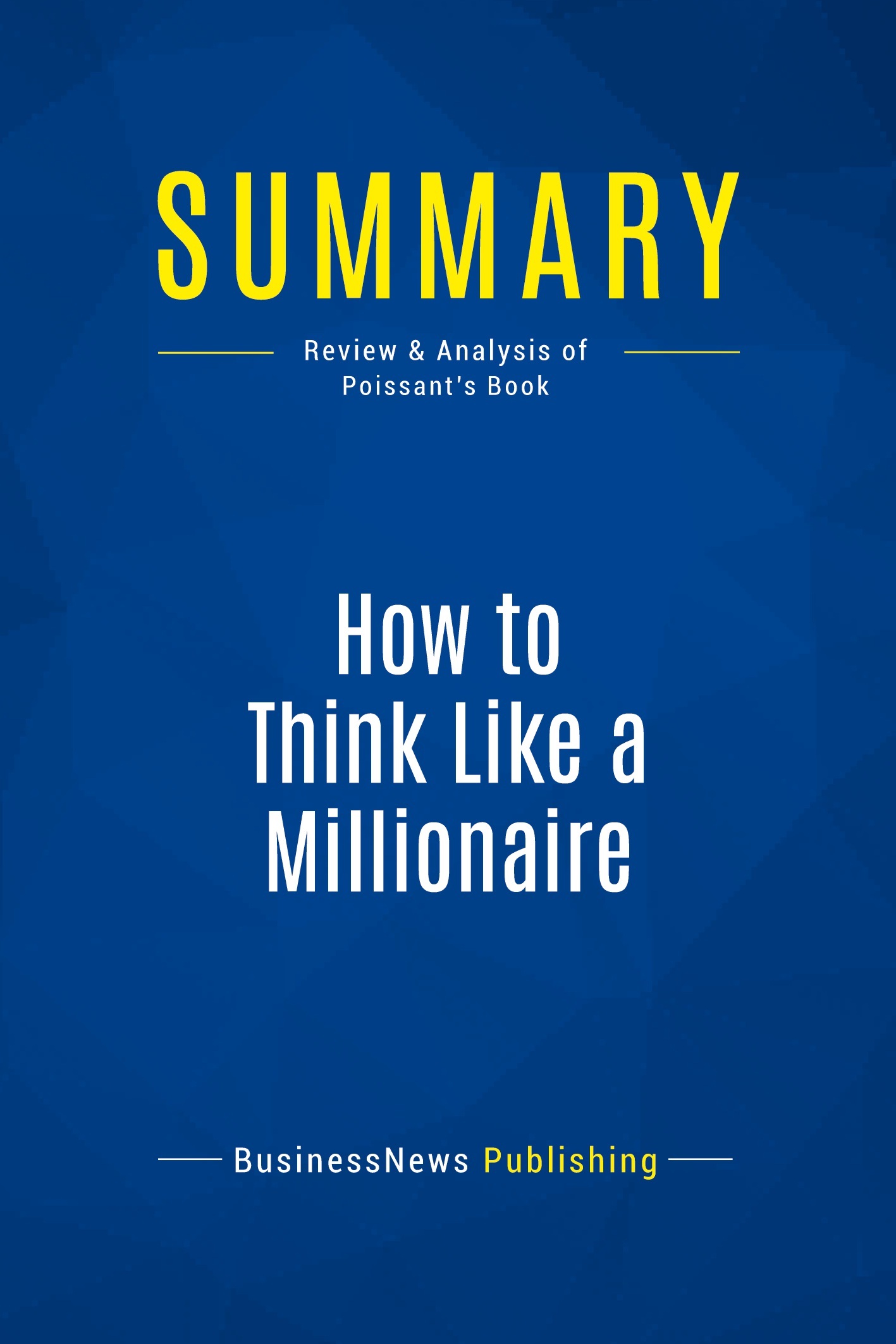 The must-read summary of Albert Poissant's book: "How to Think Like a Millionaire: Ten of the World's Most Successful People Reveal Secrets of Their Success" This complete summary of the ideas from Albert Poissant's book "How to Think Like a Millionaire" shows that successful businesspeople are successful not because of the industry they are in, but because they share four key character traits. 1. They set (and reset) written goals, 2. They get into a position where work is their passion, 3. They use their unconscious mind, 4. They learn to work effectively, and efficiently. This summary explores each of these four in depth, analysing why they are effective, and how to implement them. It encourages the reader to stop making excuses for not venturing forward with ideas, because you are never too young, too old or too uneducated to be successful. In fact it highlights that the only limits you set on yourself are self-imposed. It also explains how to use simple, practical techniques to engender confidence, determination and persistence within yourself and to increase concentration. Added-value of this book: • Save time • Understand key concepts • Increase your business knowledge To learn more, read "How to Think Like a Millionaire" and discover methods that have been proved successful in real life business situations.
