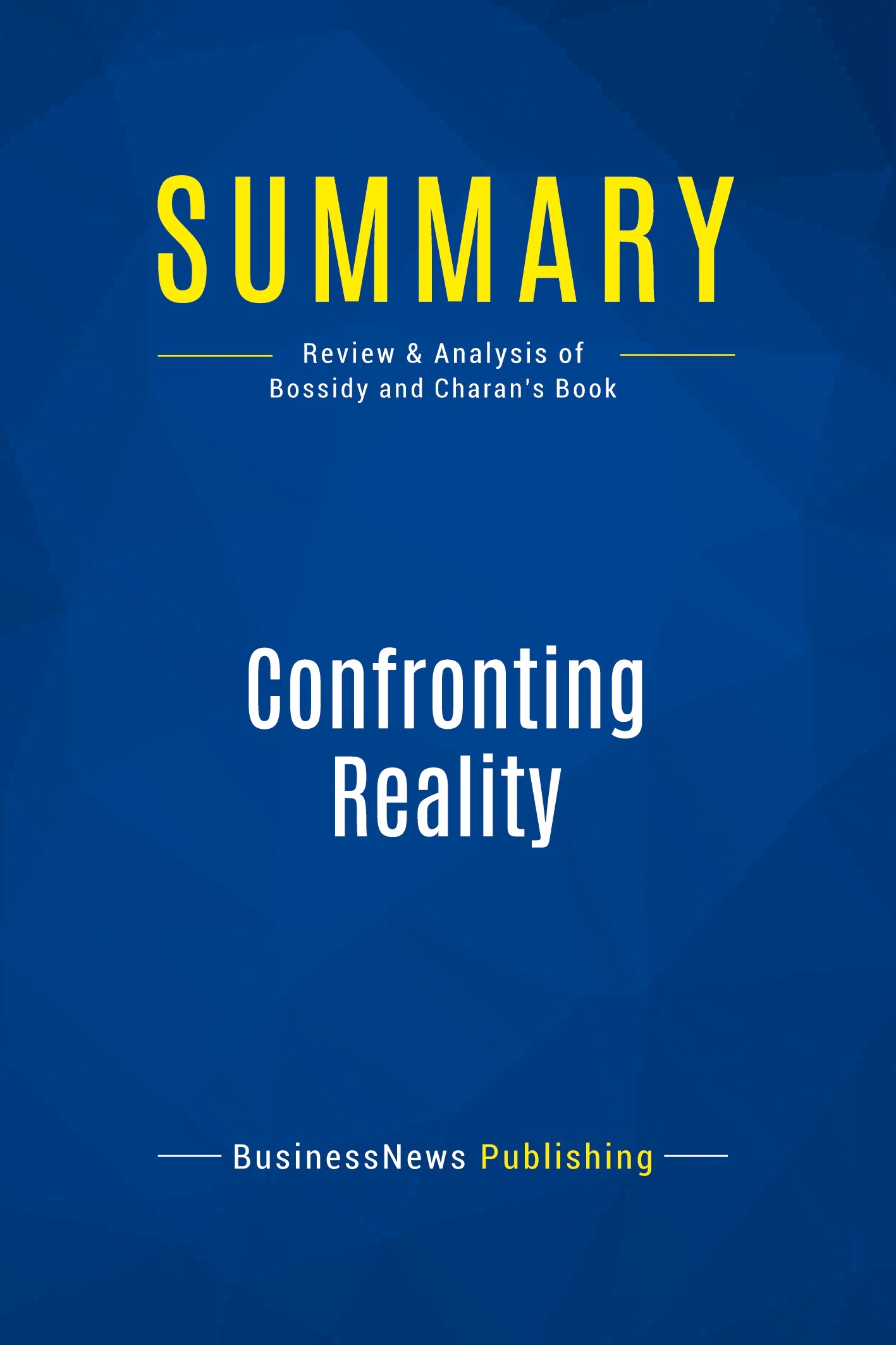 The must-read summary of Larry Bossidy and Ram Charan's book: "Confronting Reality: Doing What Matters to Get Things Right". This complete summary of the ideas from Larry Bossidy and Ram Charan's book "Confronting Reality" shows that confronting reality means changing the purpose and direction of your business on a regular basis, in order to reflect ongoing changes which occur in the marketplace. Most businesses try and get by on the assumptions of yesterday rather than the realities of today. Companies that confront reality on a consistent basis search for the current answers to three crucial questions: 1. What's the nature of the industry we're in today? 2. Where's our industry heading? 3. How will we continue to make the money we hope to make in this industry in the future? Armed with the answers to these questions, business managers can then analyse the components which determine their enterprise's success or failure. Added-value of this summary: • Save time • Understand key concepts • Increase your business knowledge To learn more, read "Confronting Reality" and discover a very practical perspective on today's business.