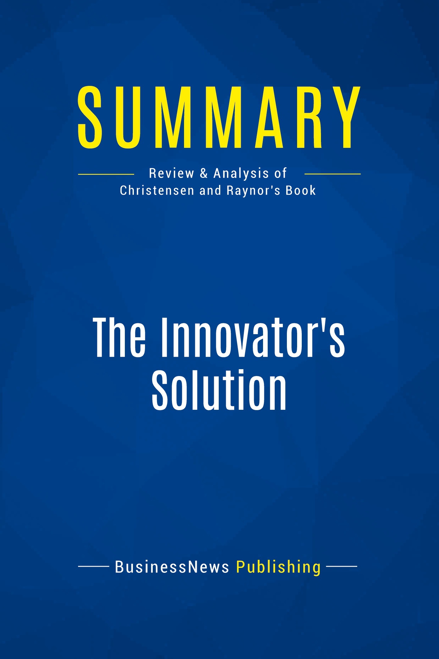 The must-read summary of Clayton Christensen and Michael Raynor's book: "The Innovator's Solution: Creating and Sustaining Successful Growth". This complete summary of the ideas from Clayton Christensen and Michael Raynor's book "The Innovator's Solution" shows how capital markets demand that all companies should grow by commercialising innovations. The companies who are successful in doing this are rewarded spectacularly, however only one company in ten is able to deliver consistent growth. In their book, the authors explain the reason behind this and how companies end up reducing the potential of their innovations. This summary will teach you how to spot the innovations that have potential and use them to grow your business. Added-value of this summary: • Save time • Understand key concepts • Expand your business knowledge To learn more, read "The Innovator's Solution" and never miss an opportunity for innovation again!