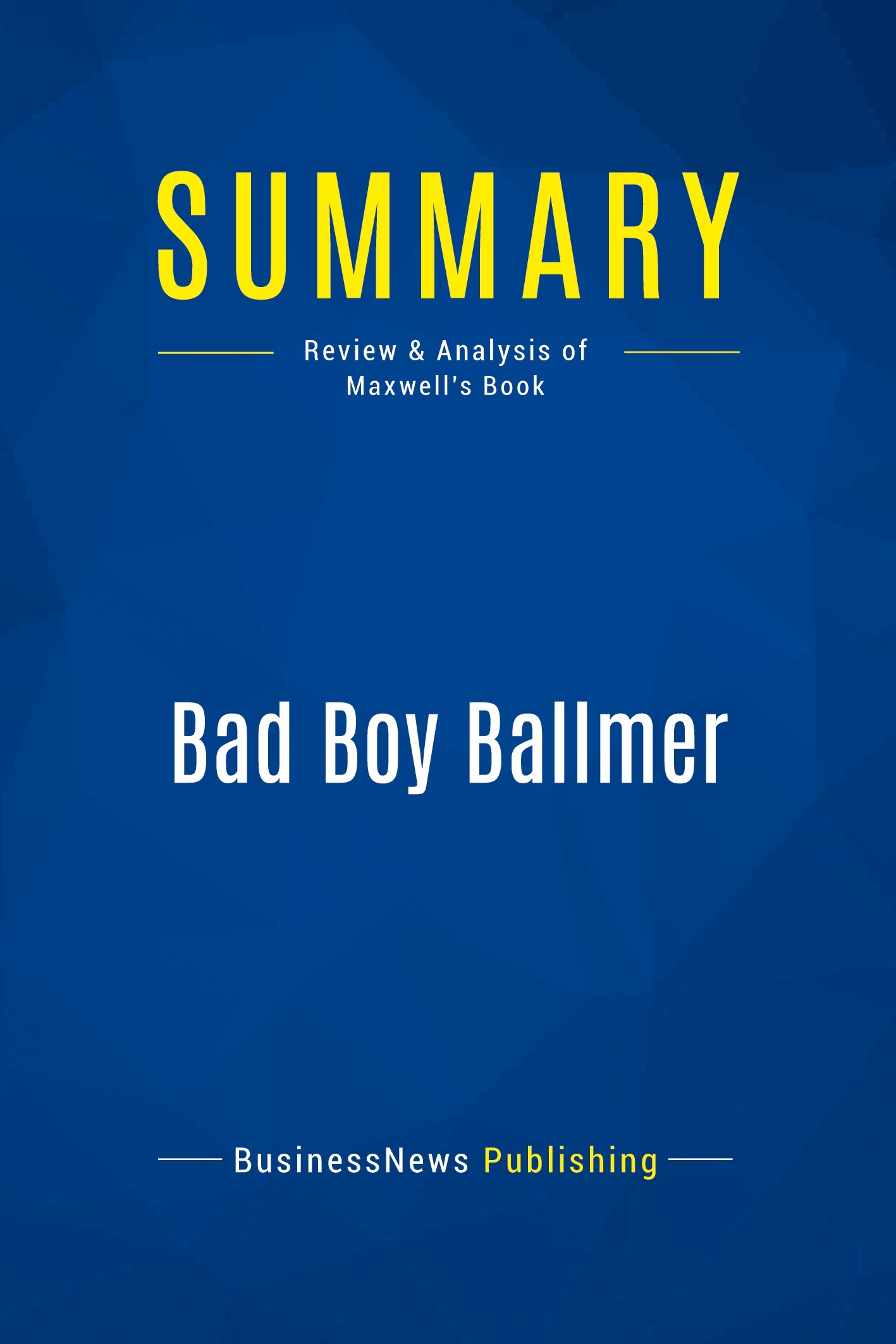 The must-read summary of Frederic Maxwell's book: "Bad Boy Ballmer: The Man Who Rules Microsoft". This complete summary of the ideas from Frederic Maxwell's book "Bad Boy Ballmer" shows how many people don't realize that Steve Ballmer works so closely alongside Bill Gates at Microsoft that they almost act as a single unit. In his book, the author explains how the two met at Harvard University in 1973 and Ballmer was later offered a job by Gates at his new company. From managing the firm's recruitment, to fending off competitors, and eventually becoming the company's CEO, this summary tells the amazing story of a highly intelligent, focused and inspiring individual. Added-value of this summary: • Save time • Understand key concepts • Expand your knowledge To learn more, read "Bad Boy Ballmer" and discover the story behind one of the world's most successful partnerships.