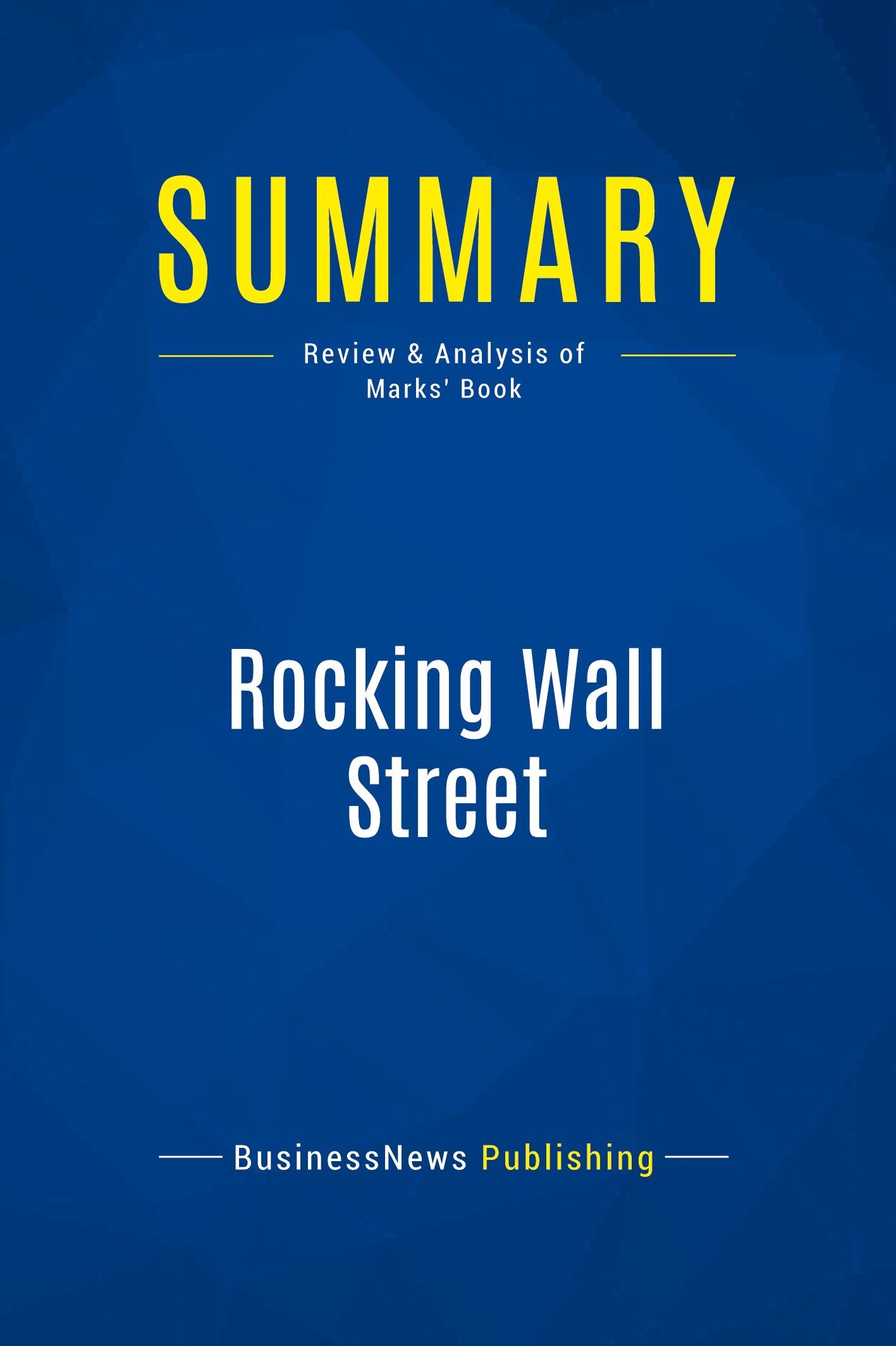 The must-read summary of Gary Marks' book: "Rocking Wall Street: Four Powerful Strategies that Will Shake Up the Way You Invest, Build Your Wealth and Give You Your Life Back". This complete summary of the ideas from Gary Marks' book "Rocking Wall Street" shows that a holistic approach to investment is more effective profit-wise and is less emotionally stressful. Do not let your portfolio run you! In his book, the author presents four strategies that will change the way you invest and give you long-term profits without fatal risk. This summary explains each of these strategies in detail and how you can implement them into your investment approach. Added-value of this summary: • Save time • Understand key concepts • Expand your investment knowledge To learn more, read "Rocking Wall Street" and discover the four simple strategies that will help you to regain control of your investments.